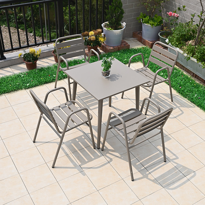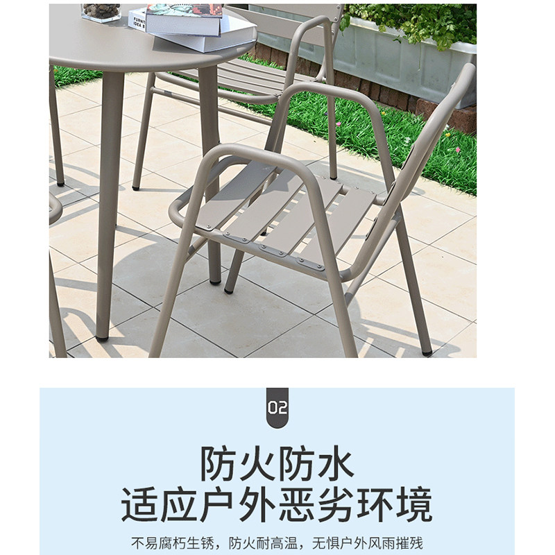 Outdoor Table And Chairs Casual Patio Garden Balcony Milk Tea Shop Café Full Aluminum Waterproof Sunscreen Integrated White