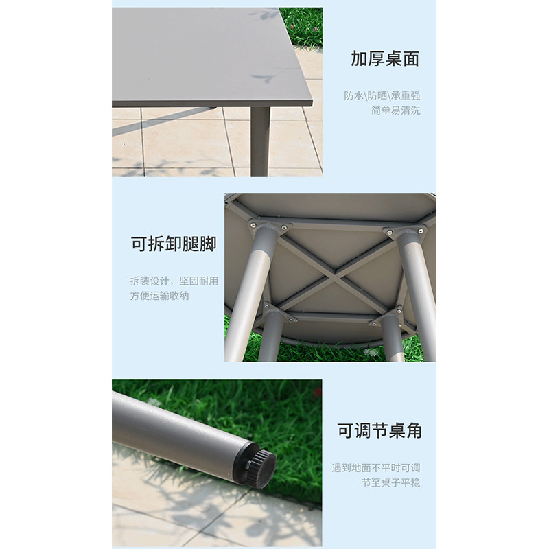 Full aluminium square table (90 * 90cm) 4 flat full aluminium round table (diameter 90cm) 4 carbon steel face aluminium feet (120 * 70cm) 6 chair full aluminium round table (diameter 90cm)