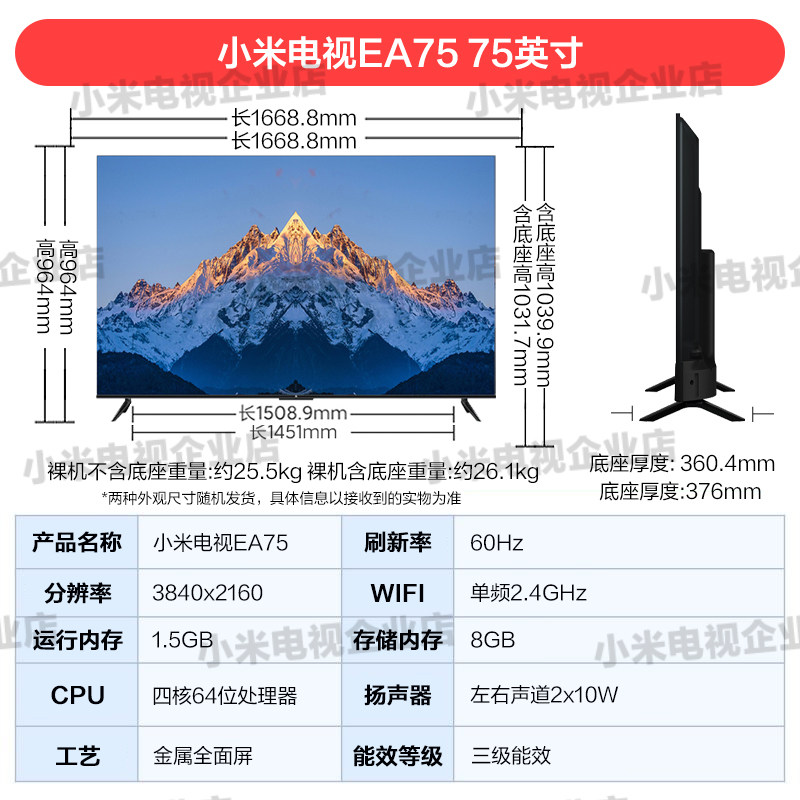 Xiaomi TV EA75 inch 4K ultra high definition voice intelligent network wifi liquid crystal home flat 65 70-Taobao