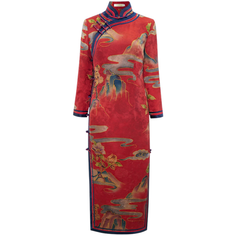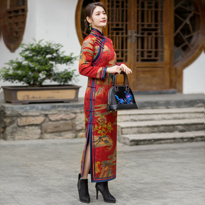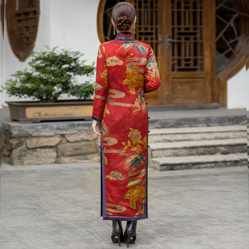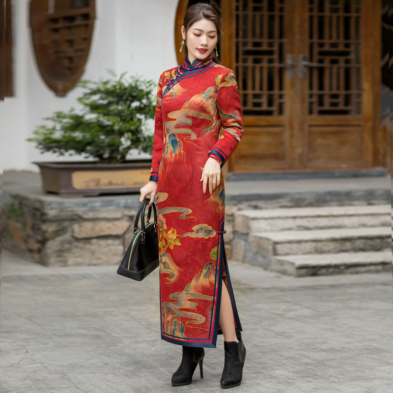 Huahua Classic 40 Mmi Heavy satin fragrant cloud yarn Winter thickened Long version of traditional handmade Temperament high-end qipao