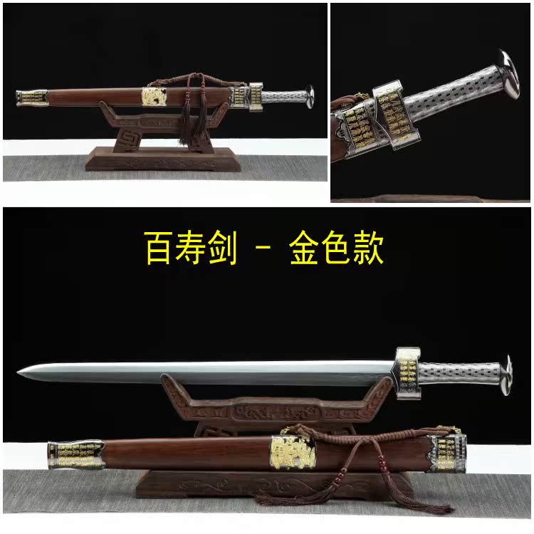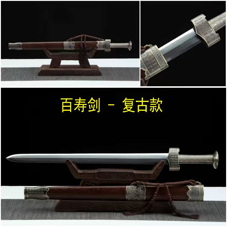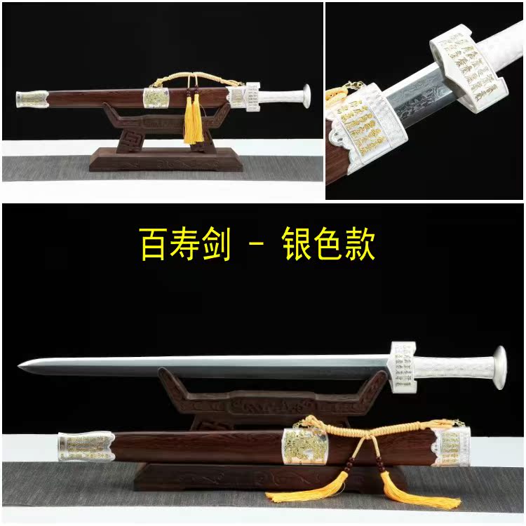 Longquan Baishou Sword Gift Short Sword Sword Hard Pattern Steel Long Sword Handicraft Collection Self-Defense Sword Unedged