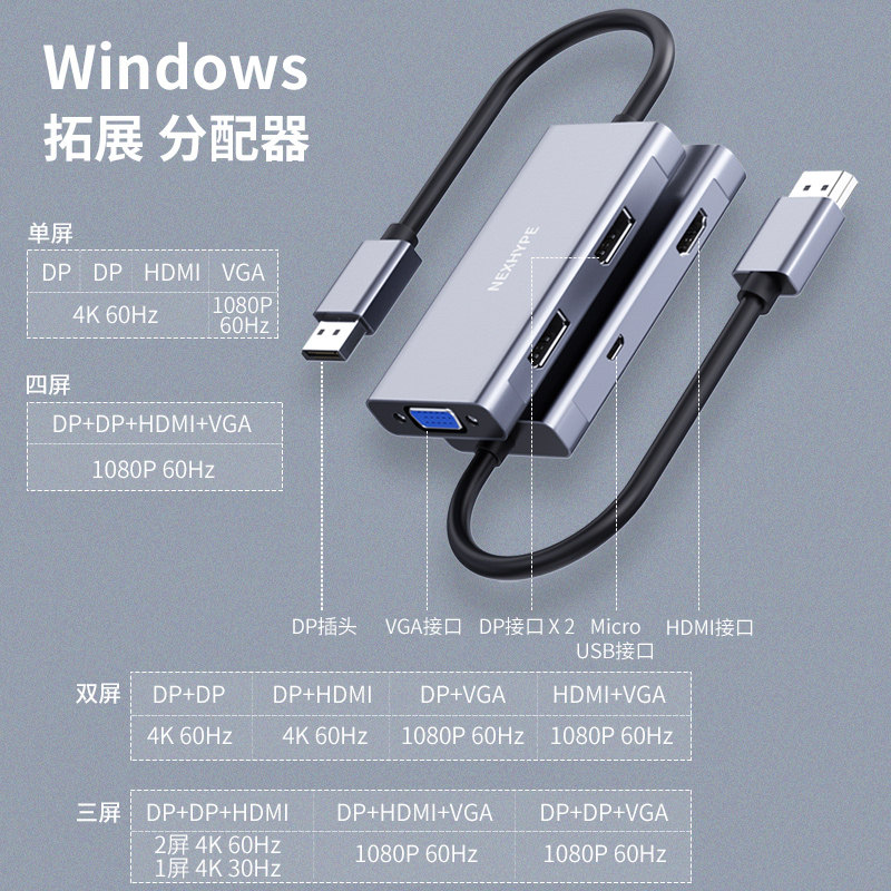 Nexhytype Computer Split Screen Host Graphics Card Stir-fry Stock Multiscreen Heteroxian 10% 4 Display hdmi 4 mouths Multi-screen extenders Desktop split screen Converter 10%-2 dp Expands Dock-Ta