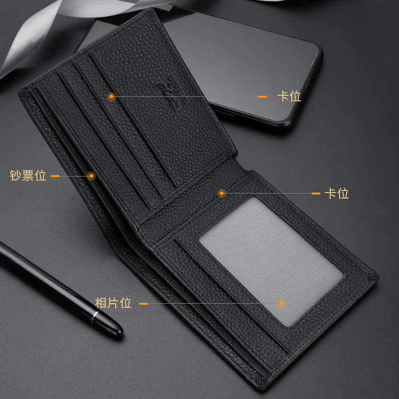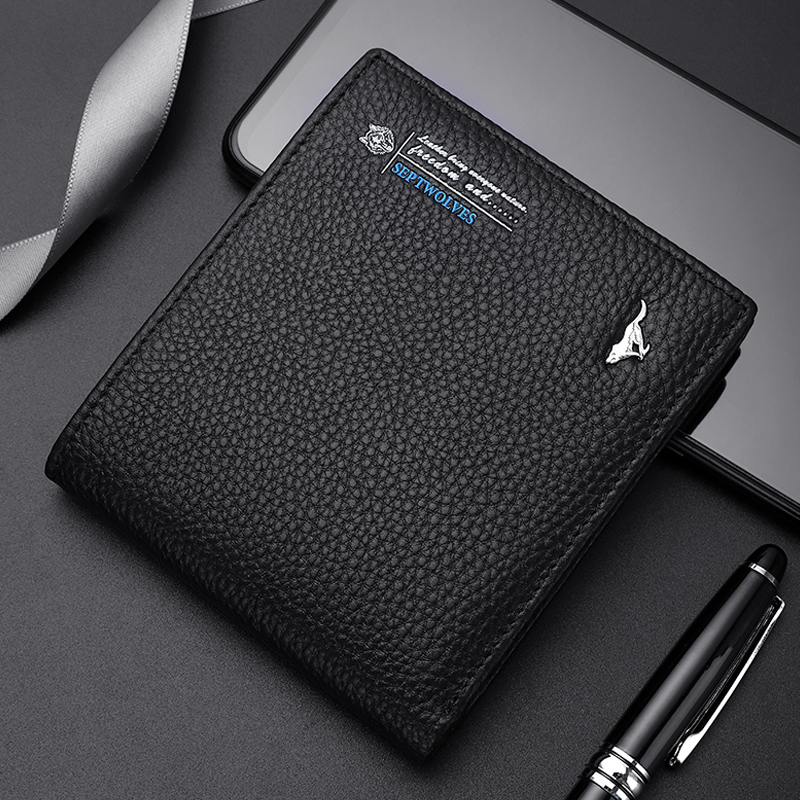 Seven Wolf Men's Leather Wallet 2021 New Little Wallet Thin Head - Leather Youth Clip Clip