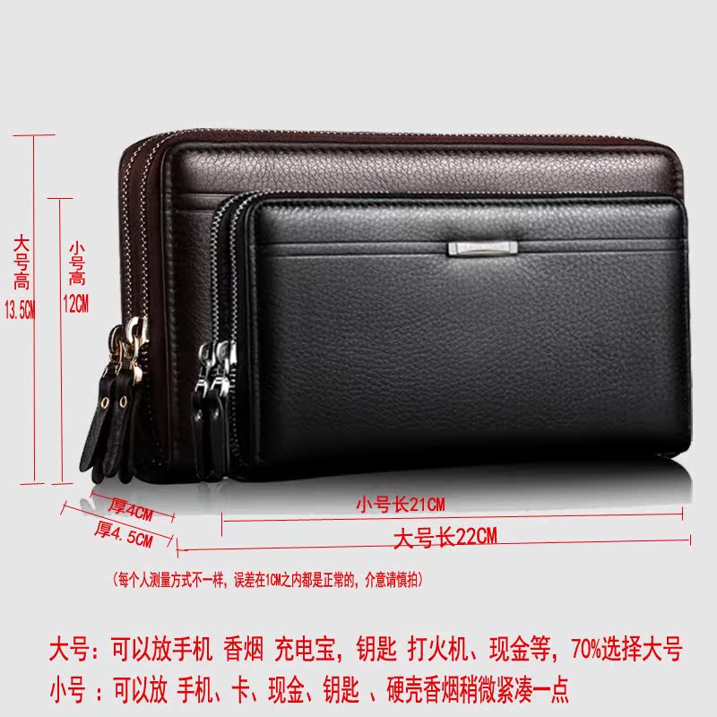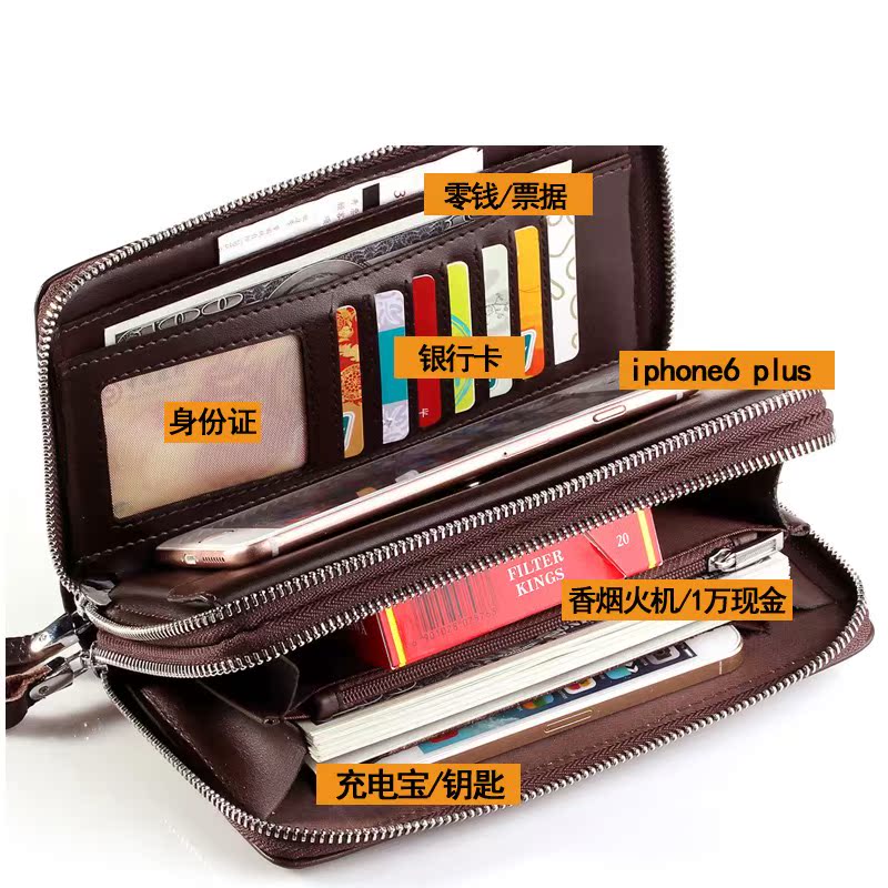 Handbag bracelet with long version wallet Laced Men Bag Genuine Leather Men's Cell Phone Bag Men's Head Layer Cow Leather Winter High-end Leather Bag