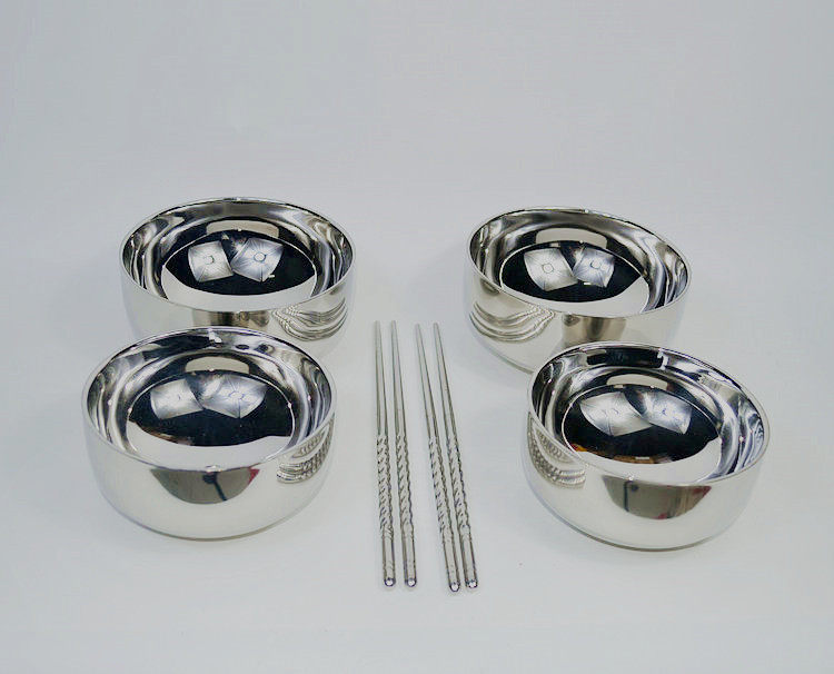 Baoxing tableware Korean stainless steel tableware bowl chopsticks set stainless steel six-piece set four bowls two pairs of chopsticks