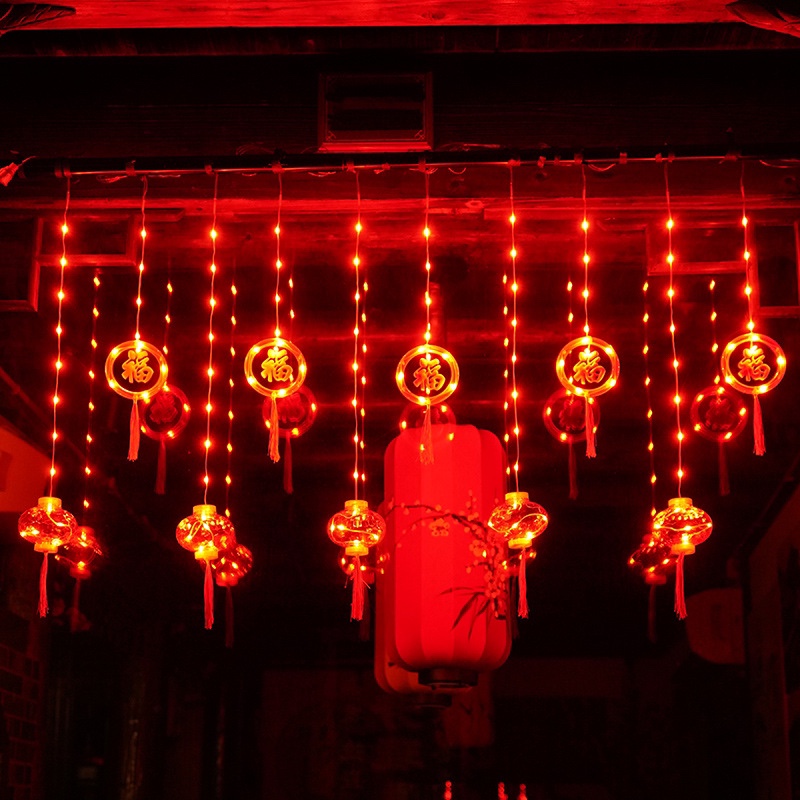 2022 Colorful Lights Fu Characters LED Lights Spring Festival Lanterns Decorative Lights for Lunar New Year Lantern Festival Balcony Hanging Lanterns for Home Flashing Lights