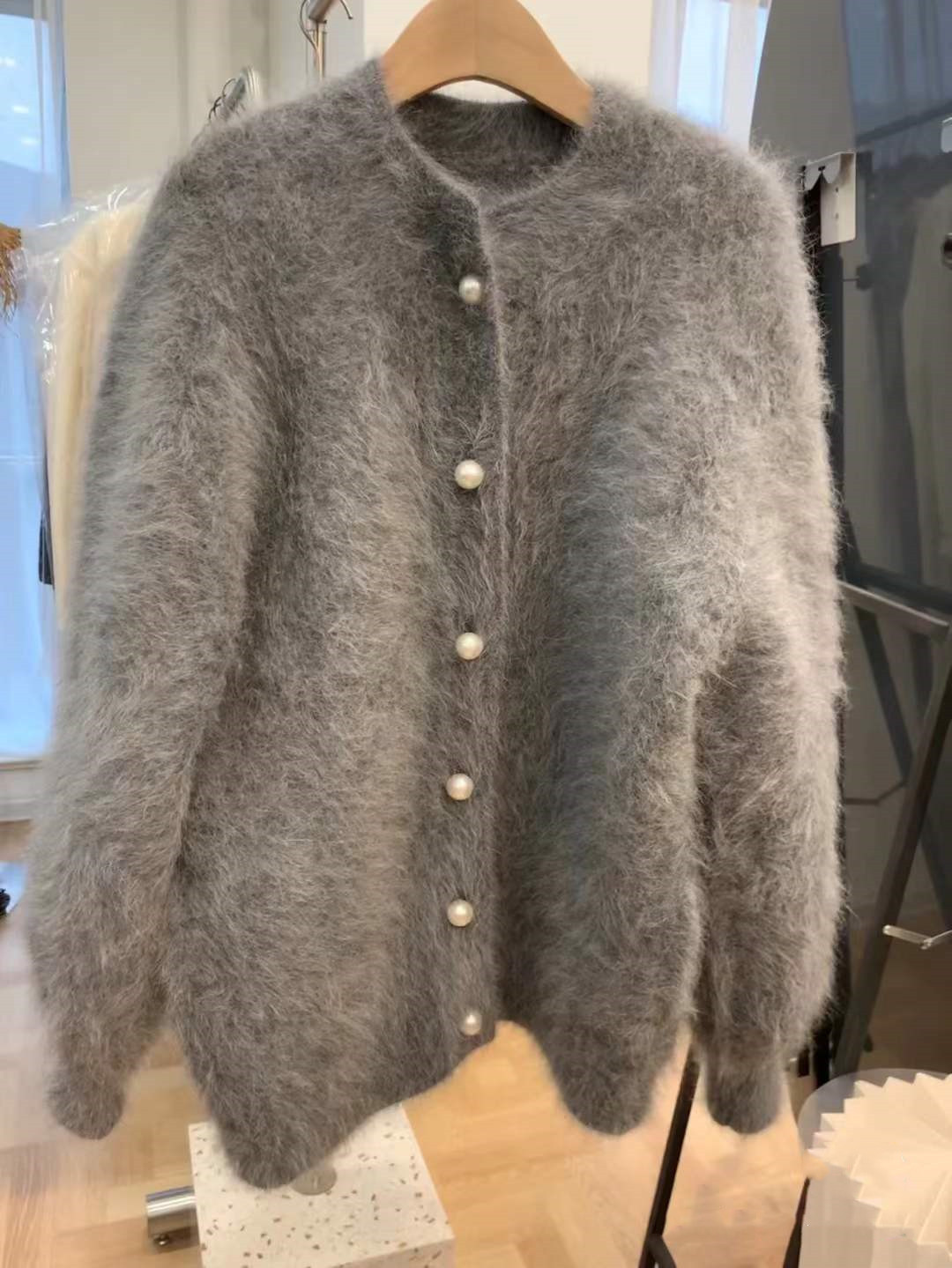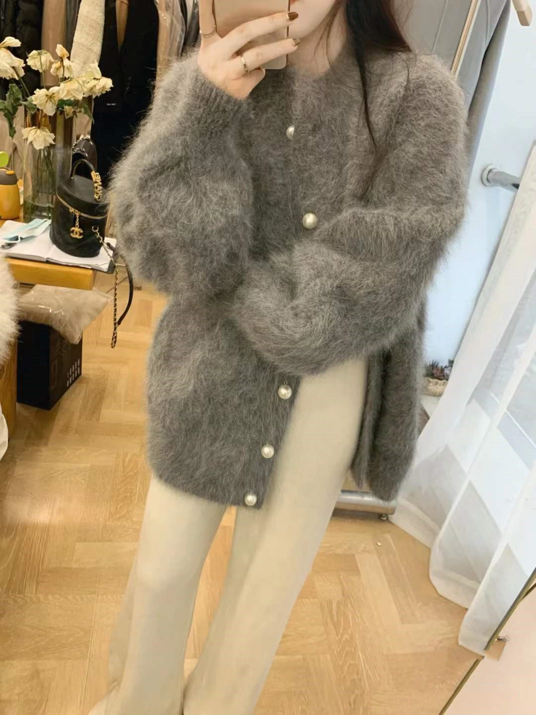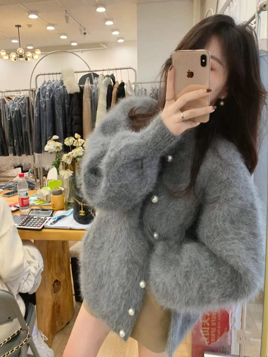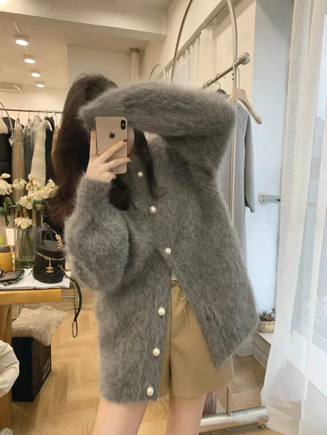 Korean version 2022 Early spring New length ferret fur coat jacket female mid-length version loose thickened Lazy Knit Cardiovert