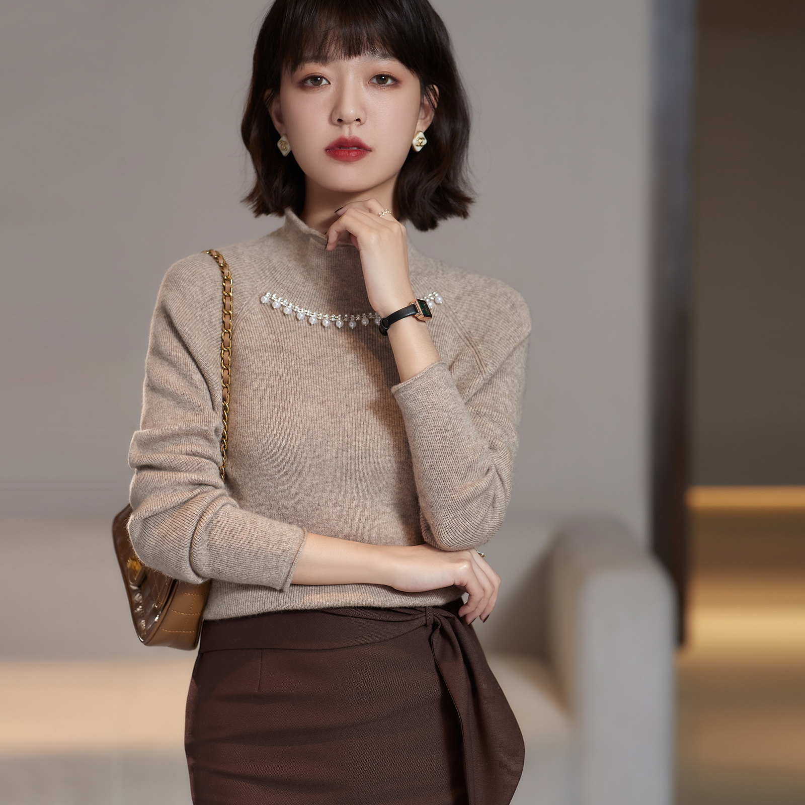 Exquisite beauty, gentle and temperament~ wool pearl collar pullover sweater women's autumn and winter new 2022