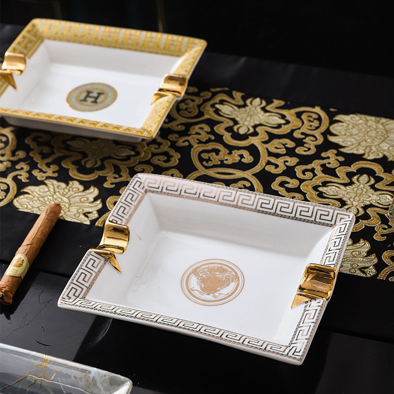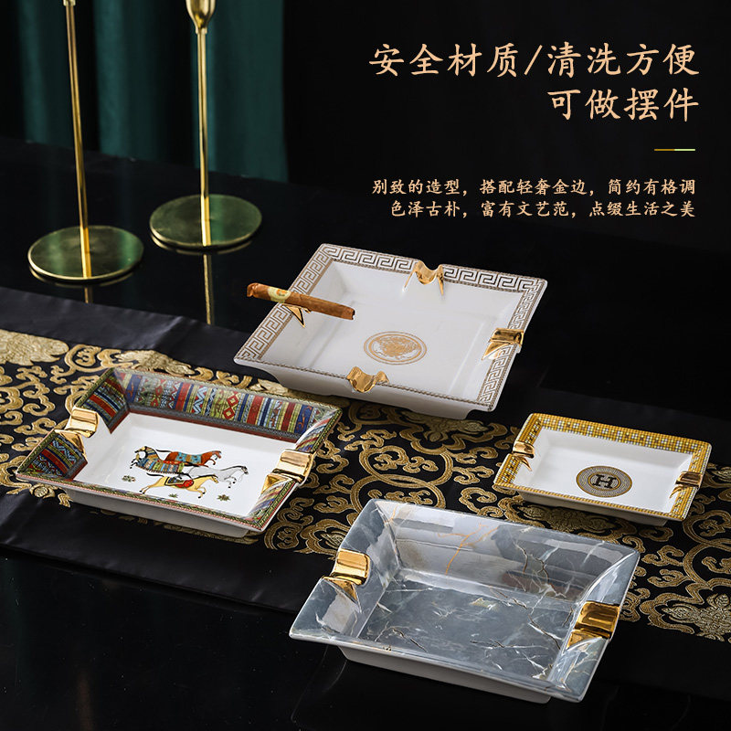 European-style Ashtrays Ceramic Home Living Room High-end Extravaganza Luxury personality KTV Snow Smoky Cylinder Home Tide-Taobao
