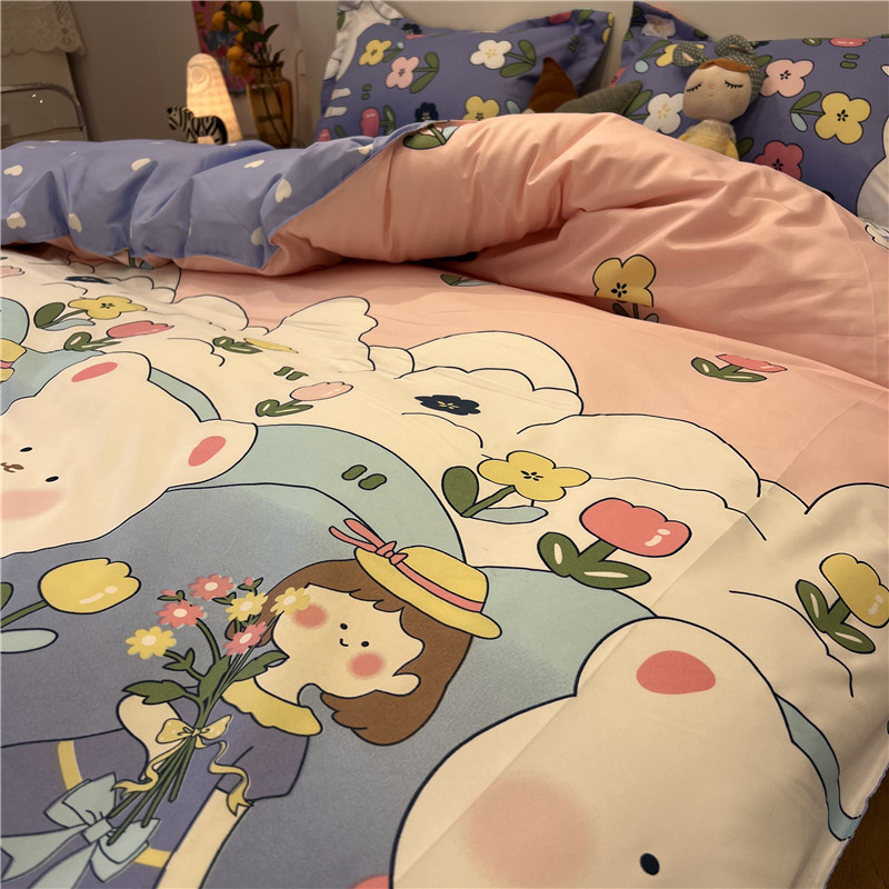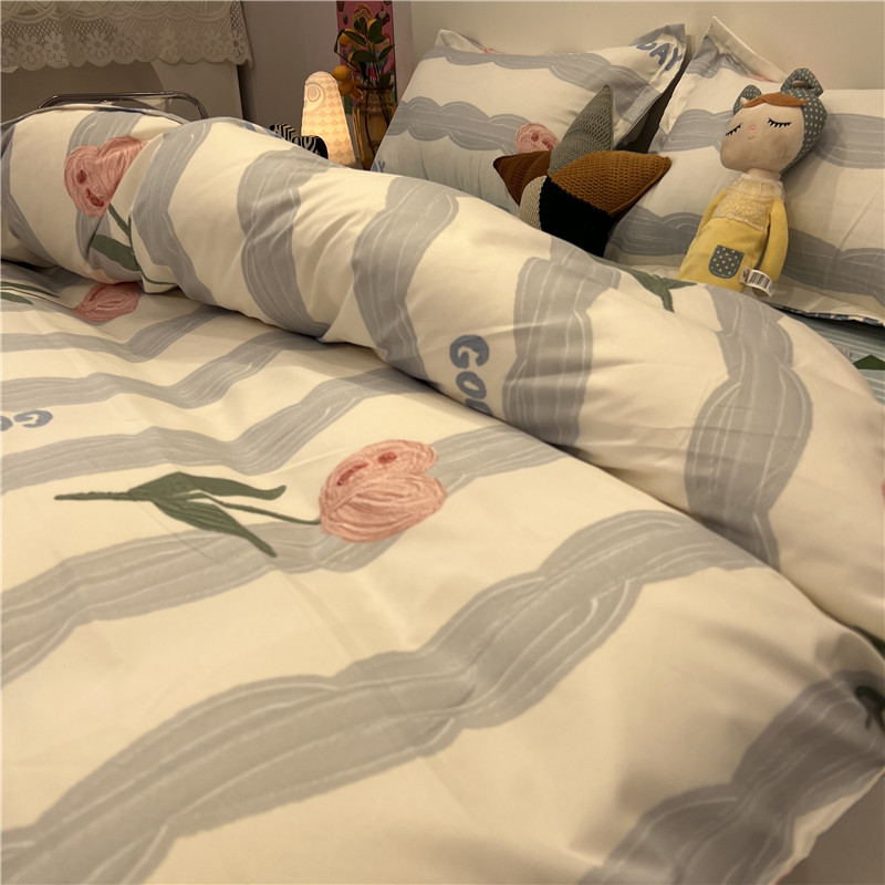 Blue Little Broken Flowers Pig spring Little Fresh Quilt Cover Four Sets of Princess Wind Student Bed Linen Three Sets 1 8