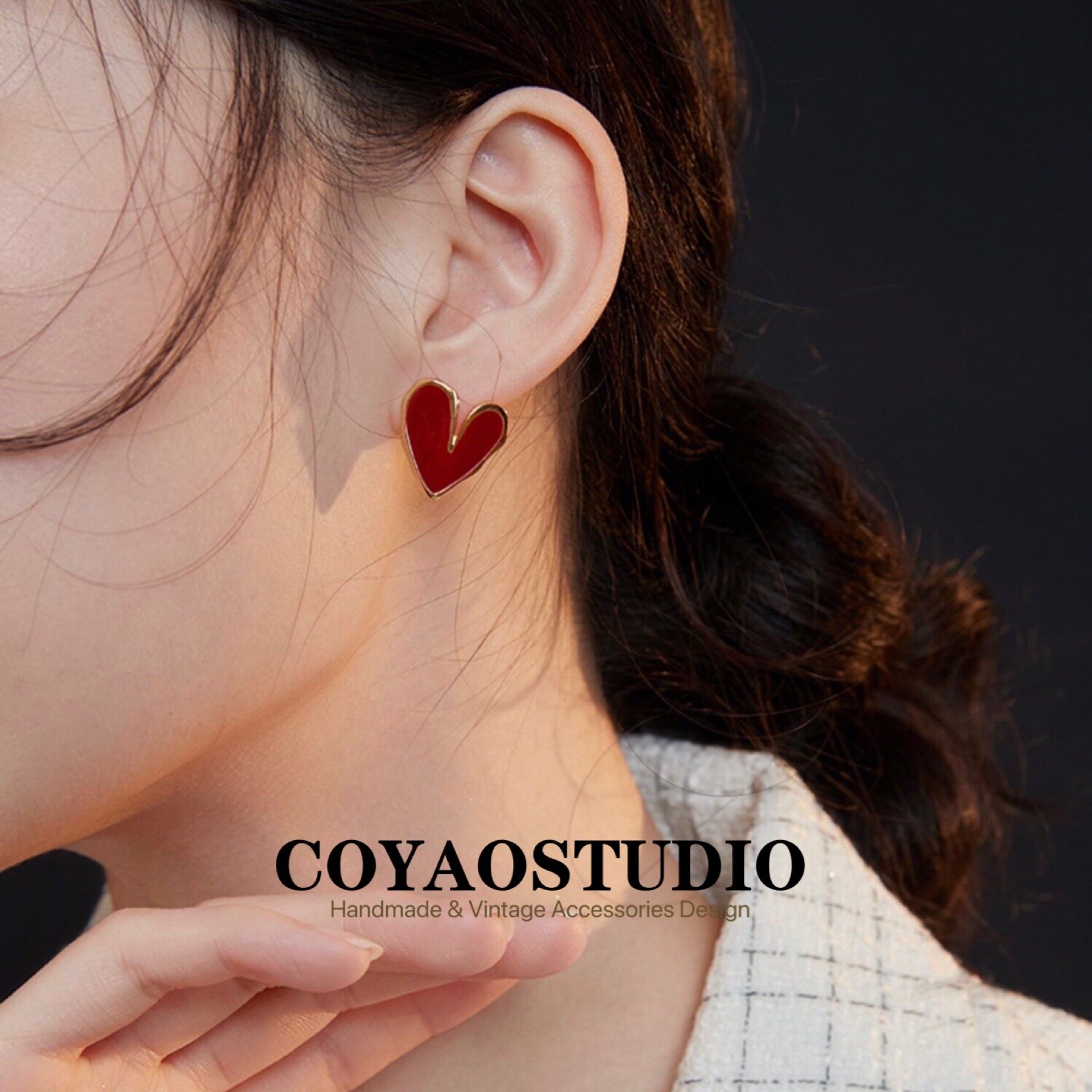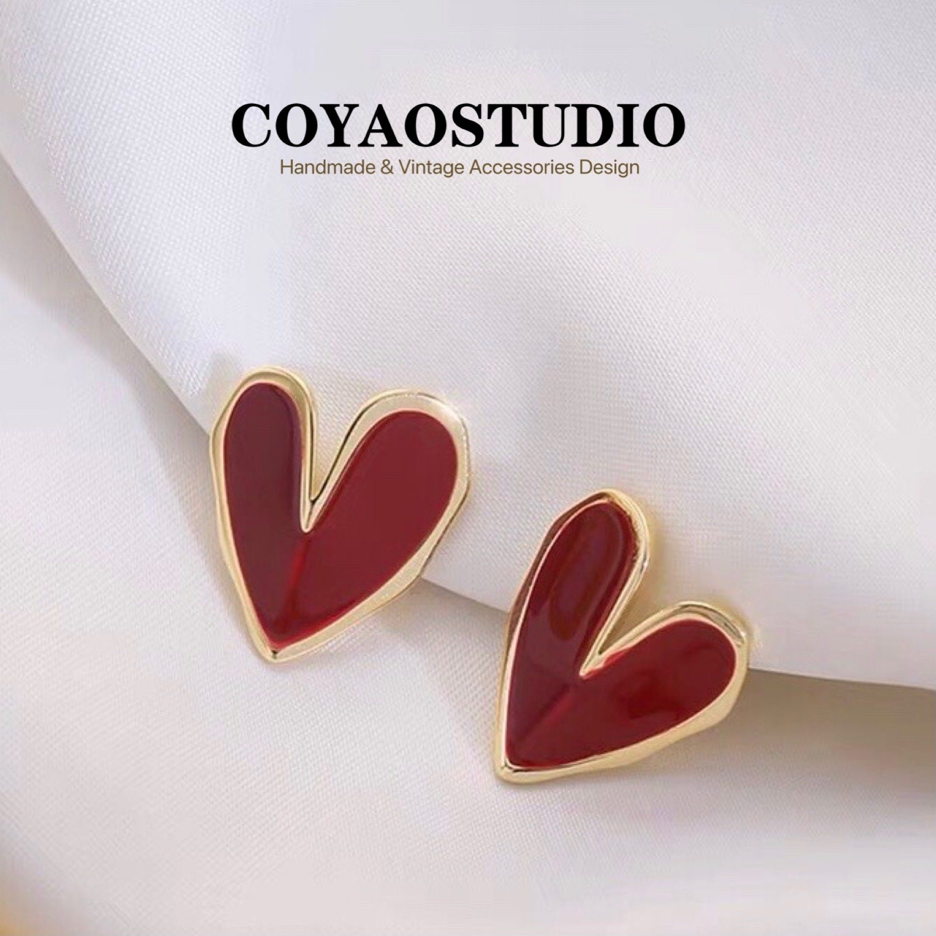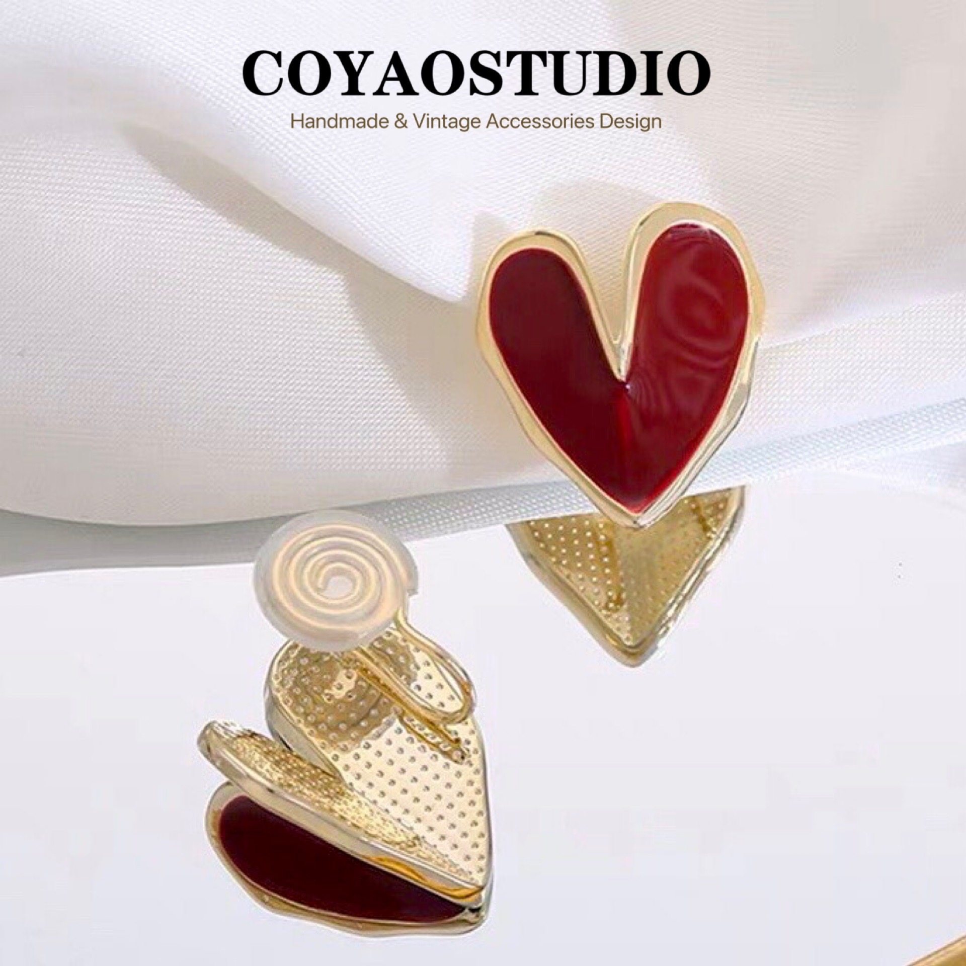"Wine Heart Candy" Valentine's Day girl retro red love ear clips without ear holes simple temperament mosquito coil earrings