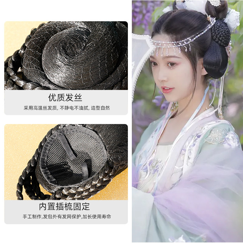 Antique wig bag high temperature hair silk Hanfu hair bun mat hair ancient costume modeling girls all-match twist braid simple hairstyle