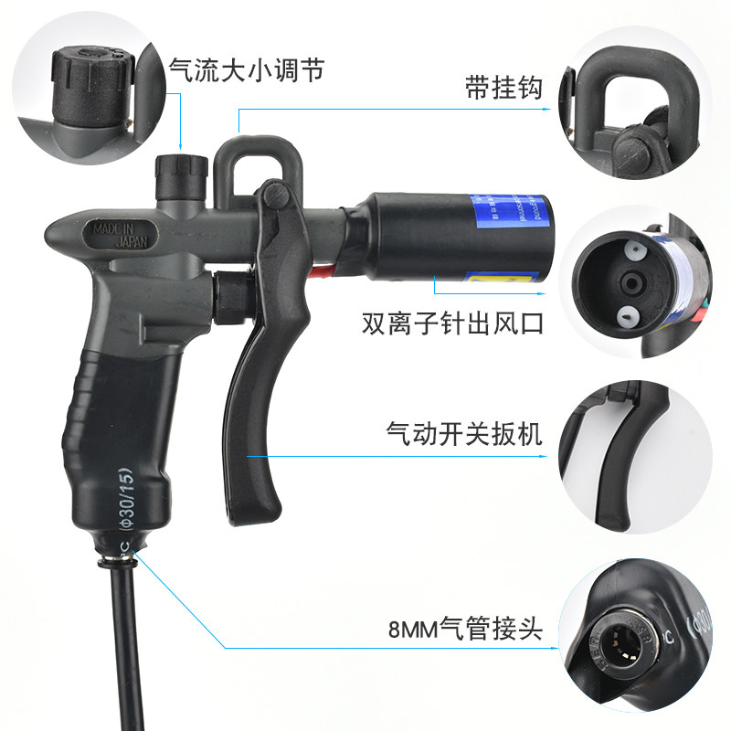 Electrostatic ion air gun industrial dust removal electrostatic elimination device handheld electrostatic hair dust removal high pressure air gun spray head