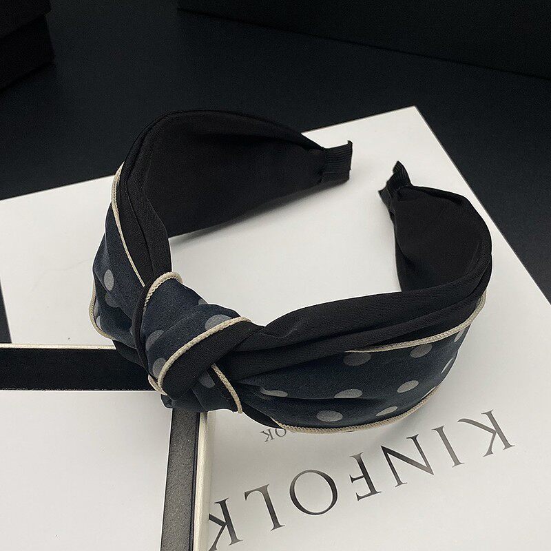 Wave point headband high-end 2021 fabric Korean retro mesh headband hair accessories women's wide-brimmed hairpin knotted headwear