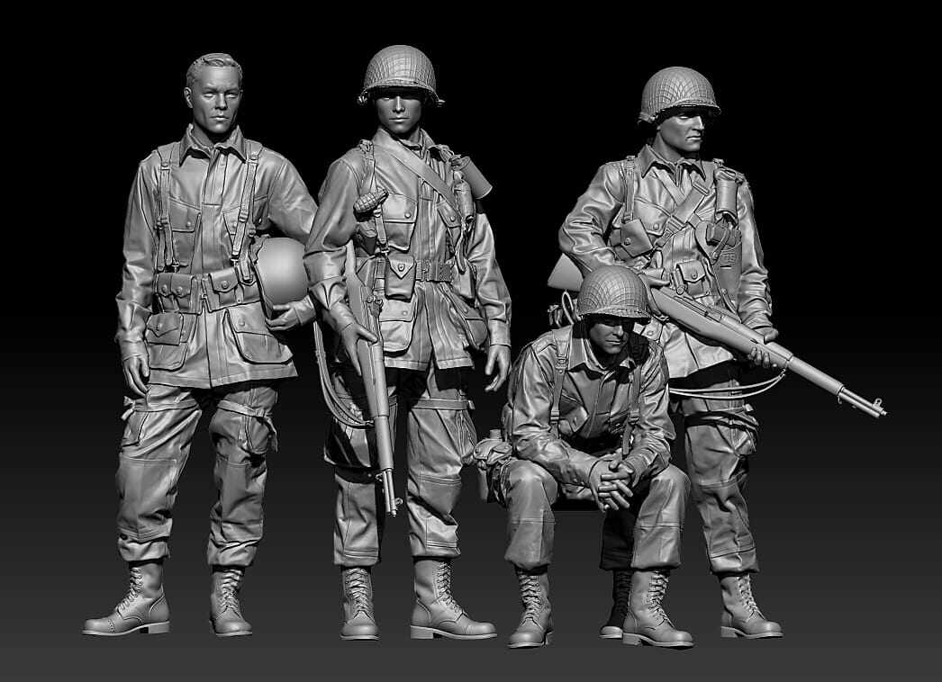 1 35 resin soldier model US military airborne soldier 4 persons serial number 1077