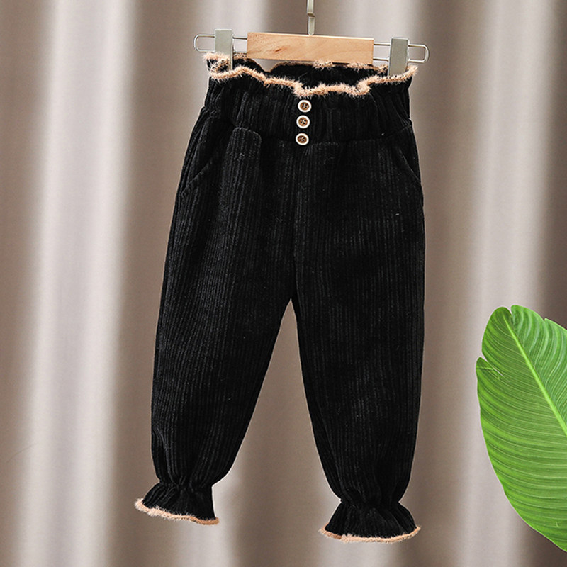 Girls' velvet thickened pants 2022 new trendy children's middle-aged children's high-waisted casual pants all-in-one velvet Western style