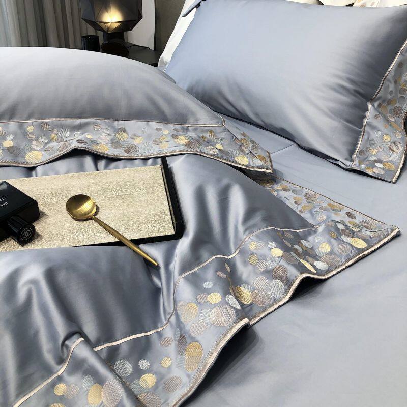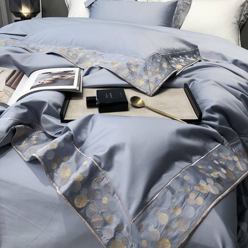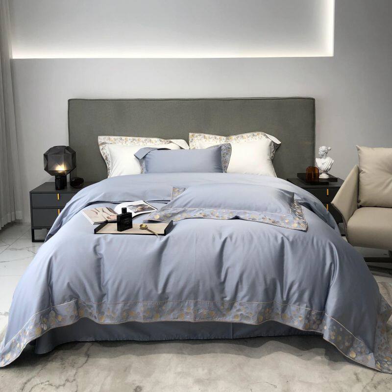 Class A style light and luxurious 100 long suede cotton four pieces full cotton pure cotton High level Minimalist Embroidery Quilt Cover Bed