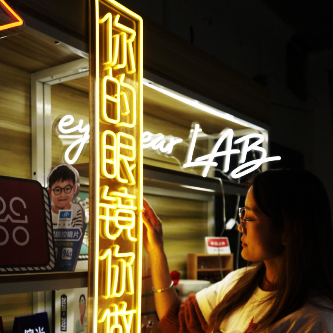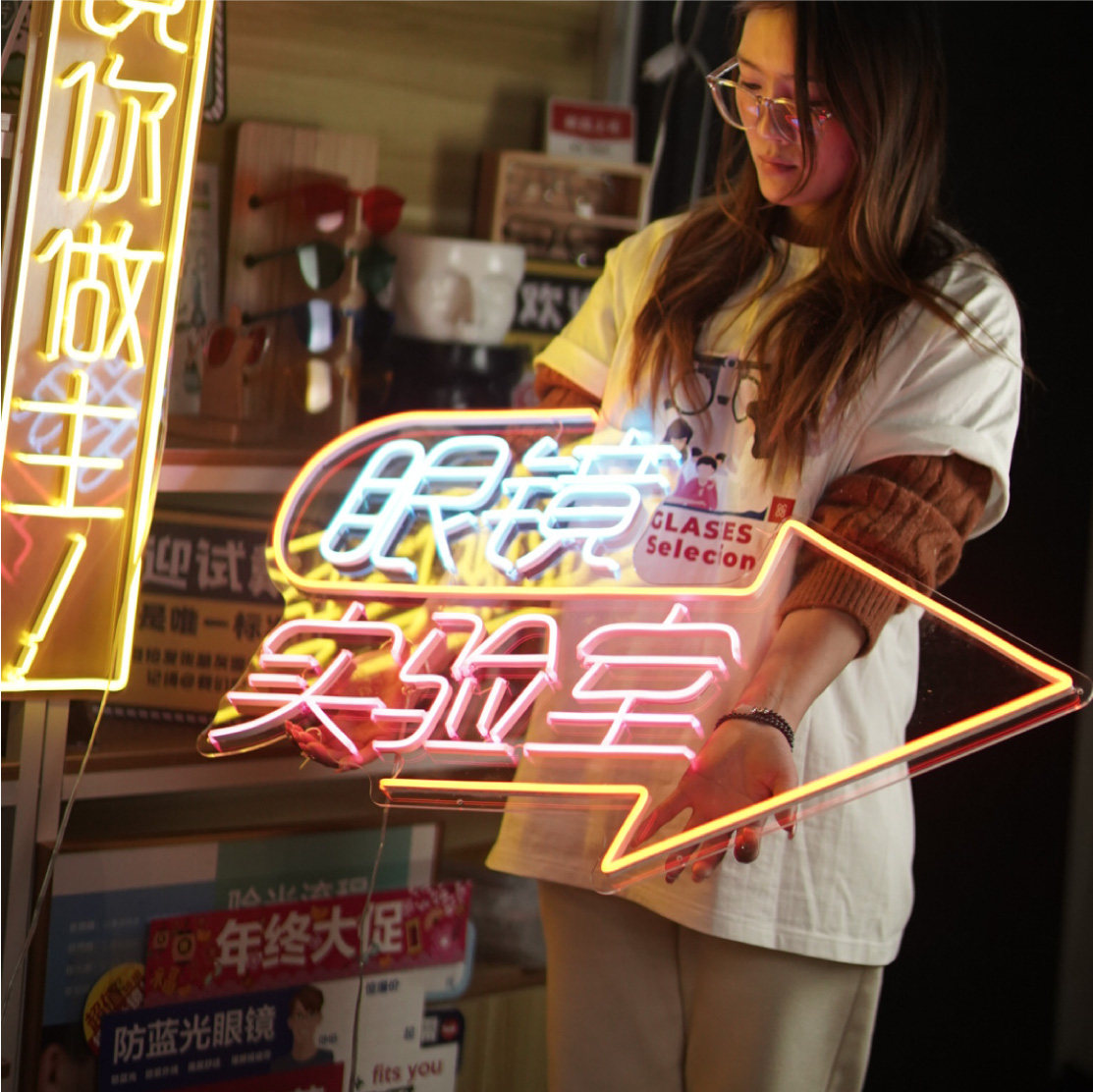 Glasses Shop Decoration Luminous Character Decoration Painting Shop Window Display LED Neon Promotion Advertising Painting Poster Art