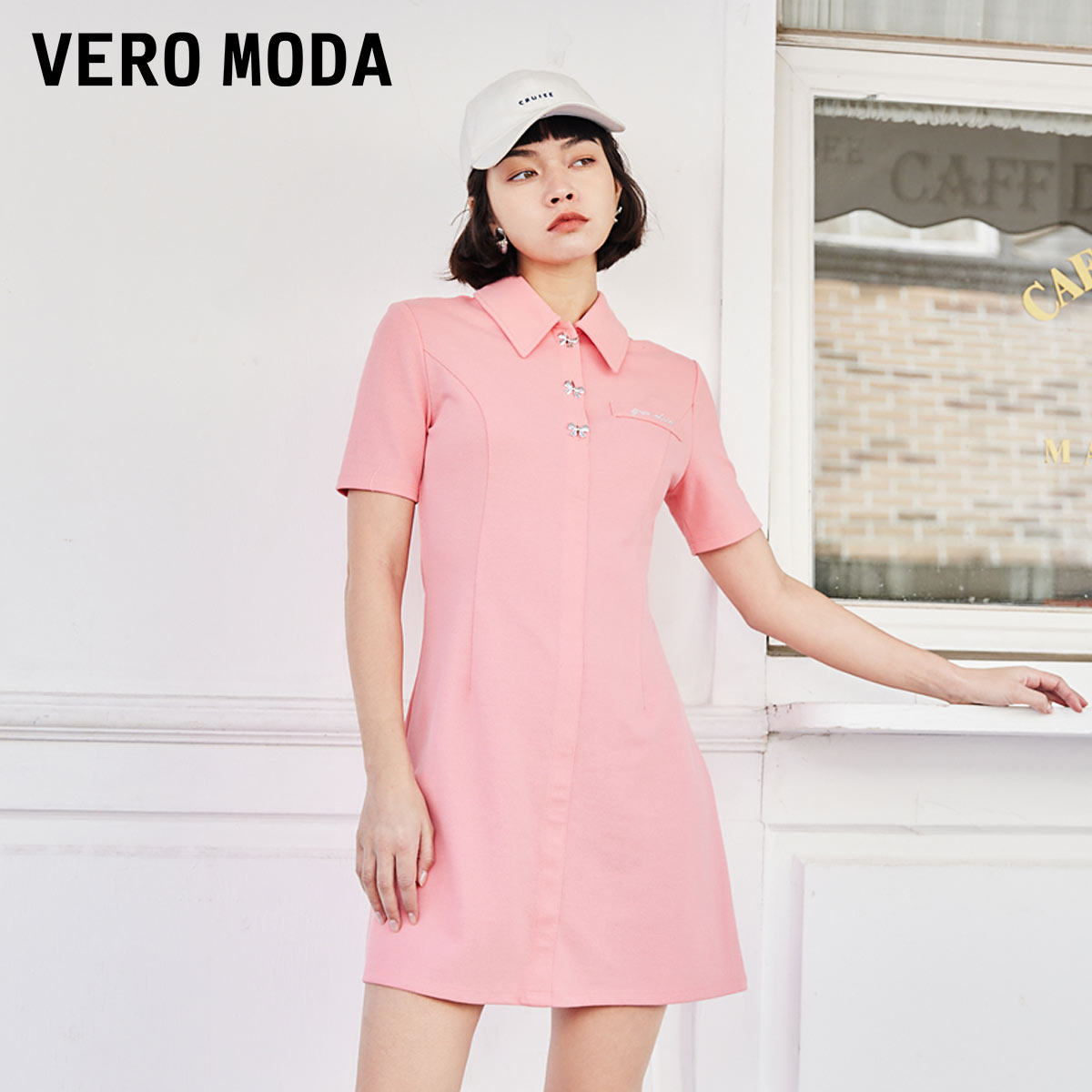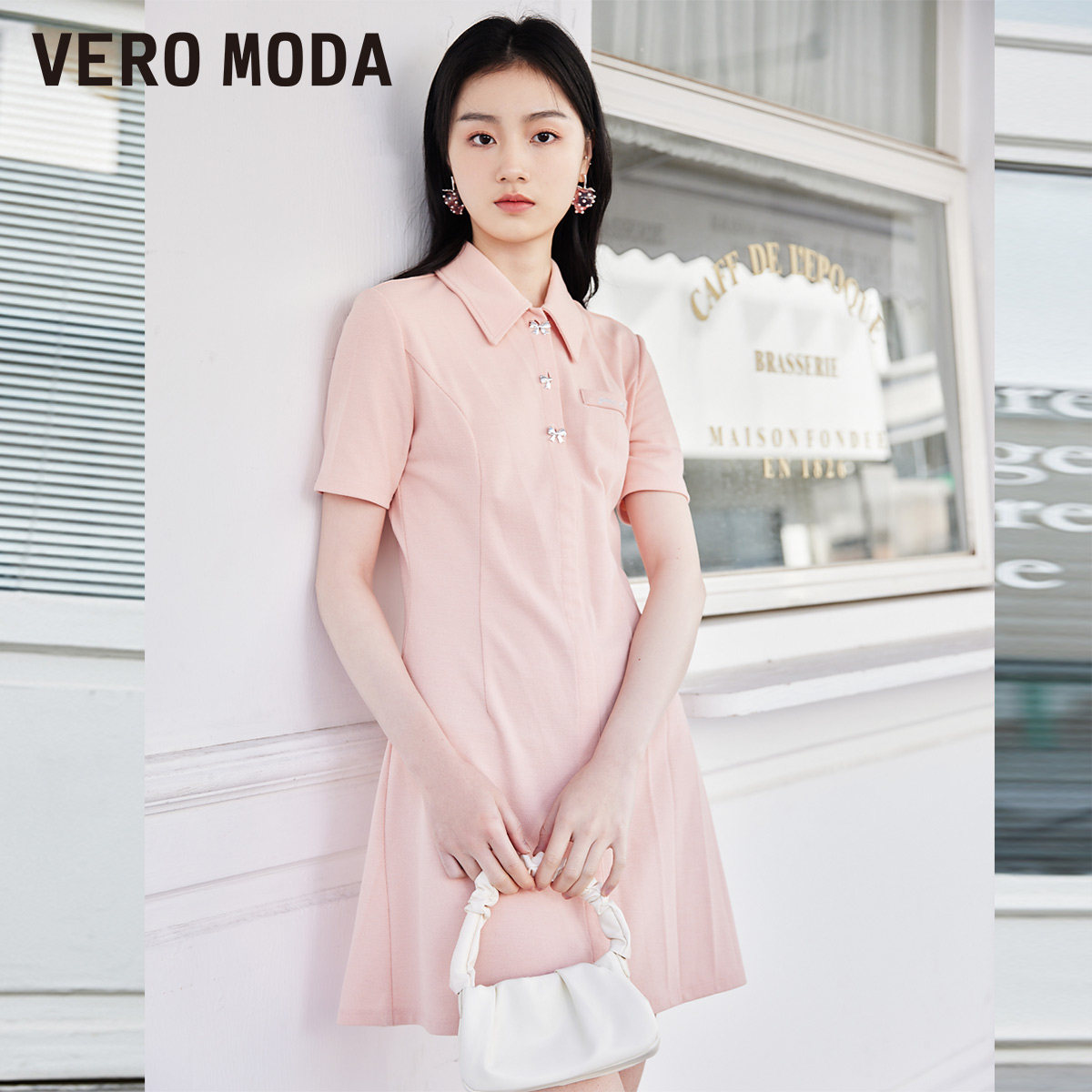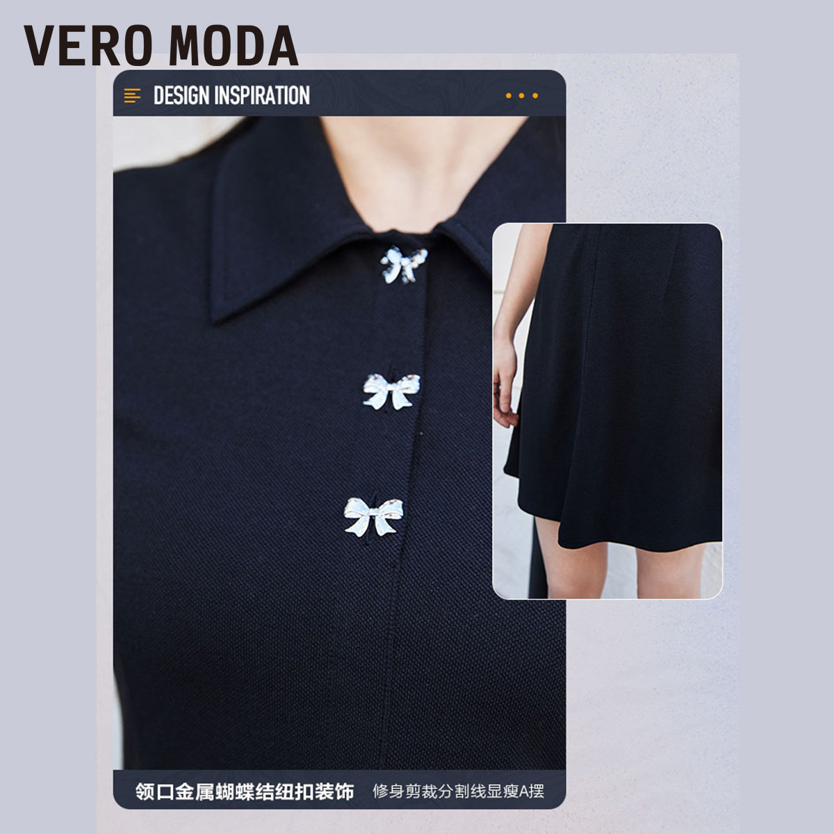 Vero Moda Summer 2022 New Slim Polo Collar Premium Black French Dress Ladies 322161015