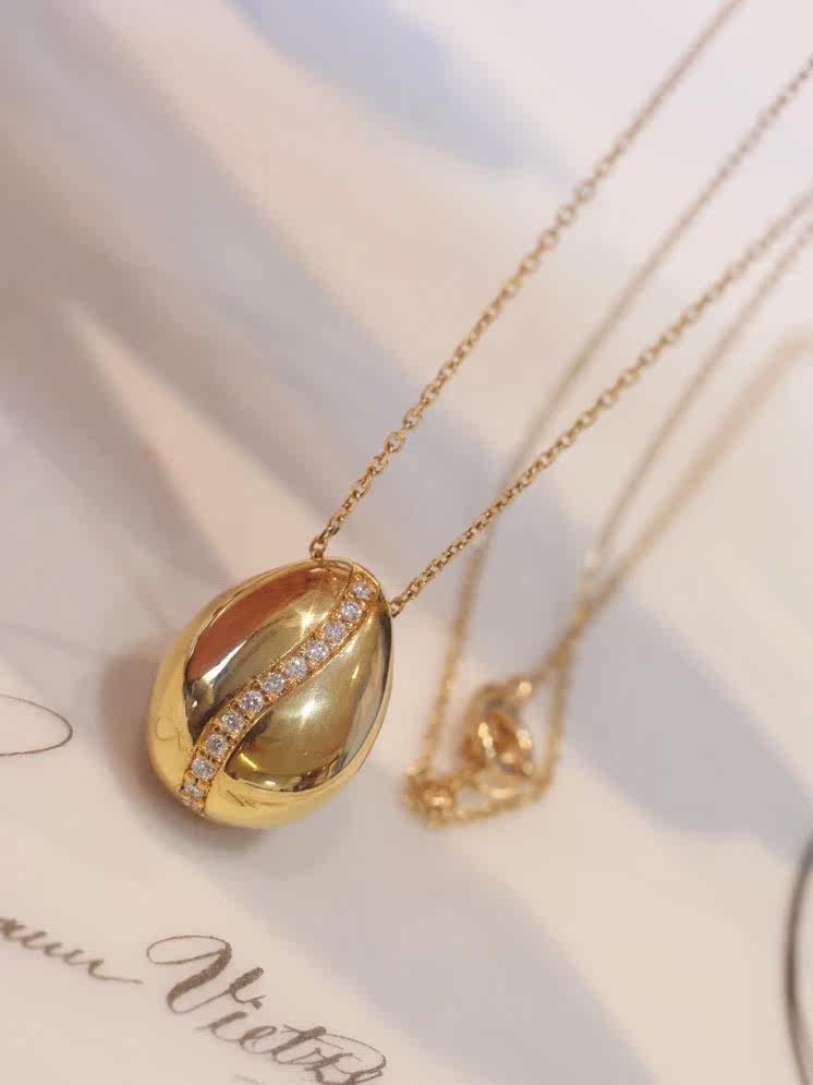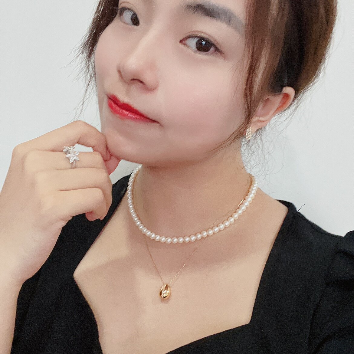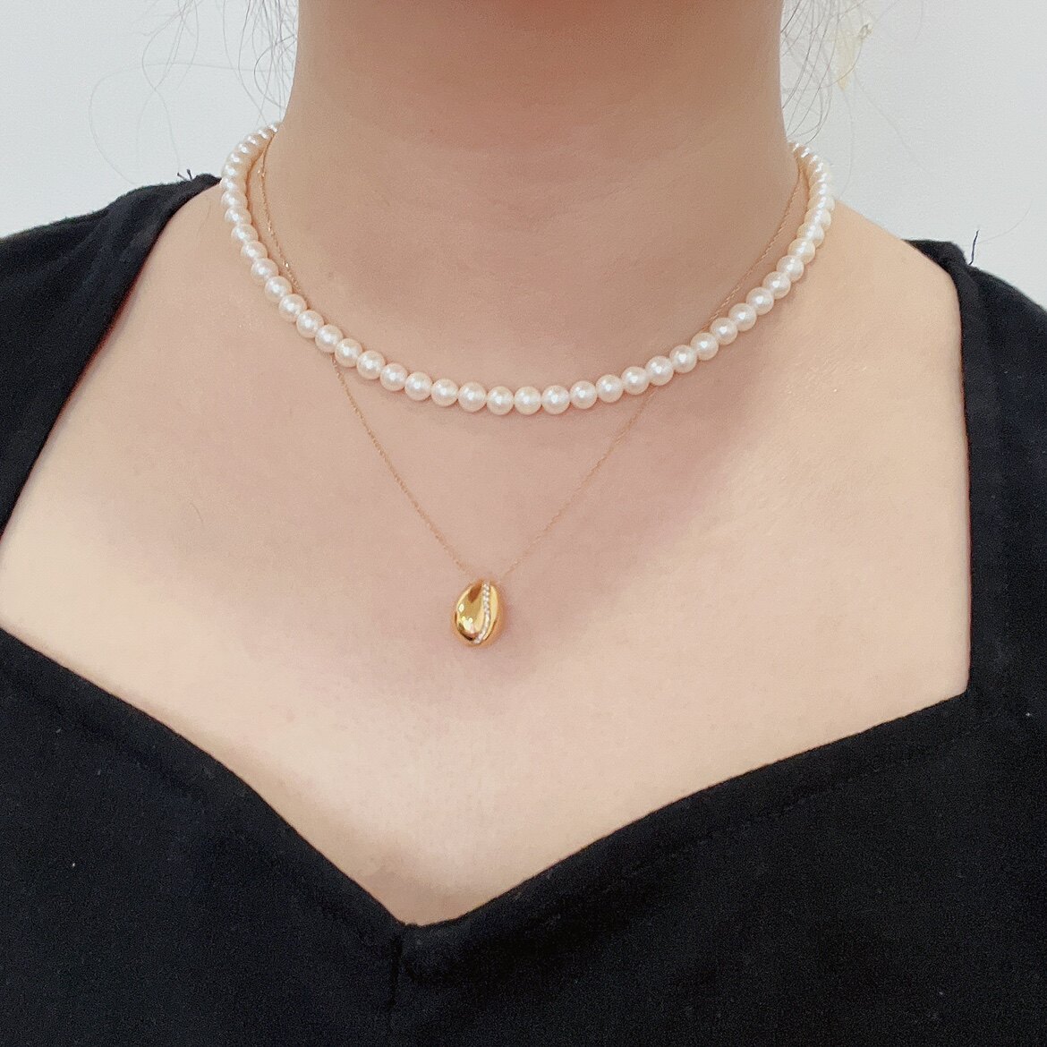 Coffee beans 18K gold inlaid diamond necklace 6-7mm round bright freshwater pearl 18K gold tail buckle clavicle chain
