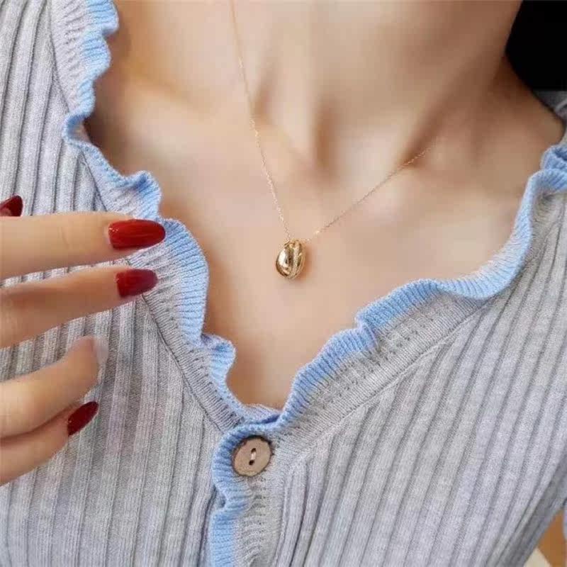 18K Gold Coffee Bean Pendant Without Necklace 18K Gold Coffee Bean Pendant with Necklace 6-7mm Natural Freshwater Pearl Necklace