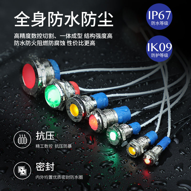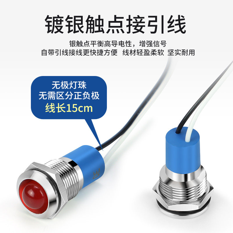 16mm waterproof metal indicator light power work signal lamp 12v 24v 220v 220v body waterproof with wire