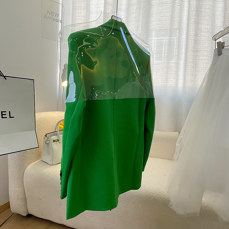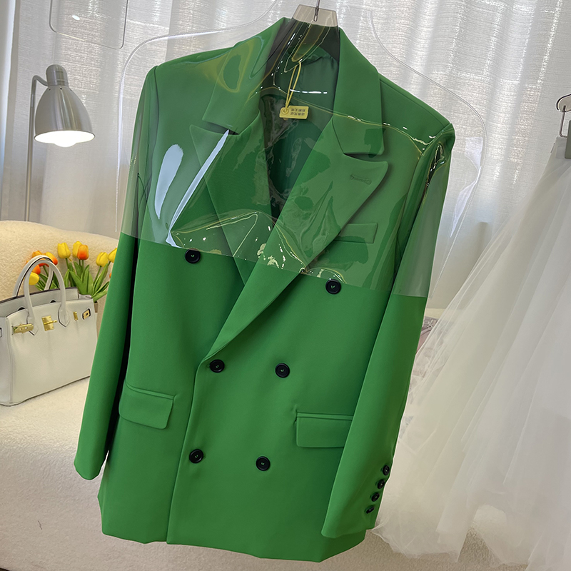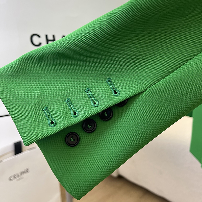 Green suit jacket female short section 2022 Early spring new Korean version Fashion double-row buckle temperament Thin Western Suit Blouse