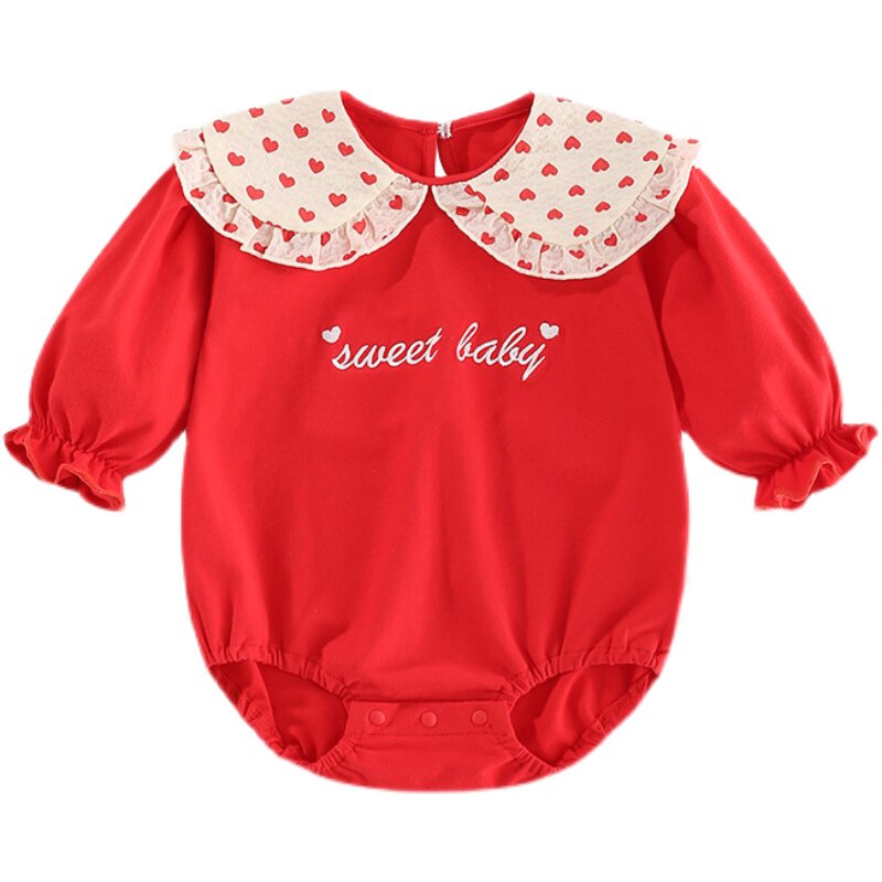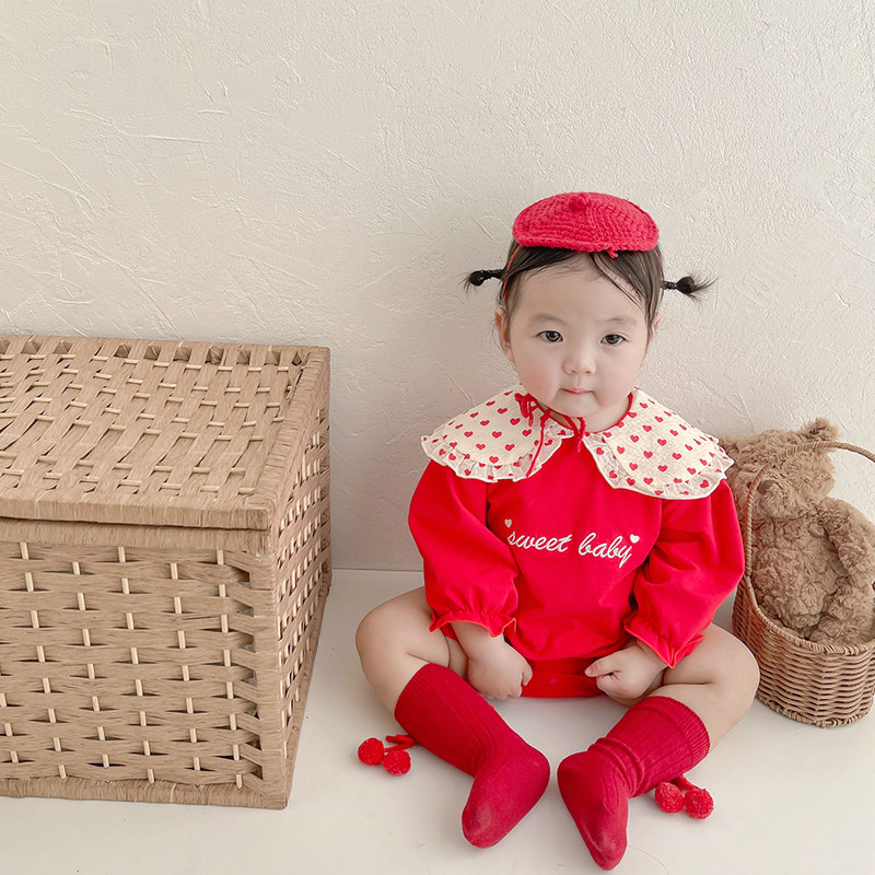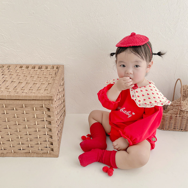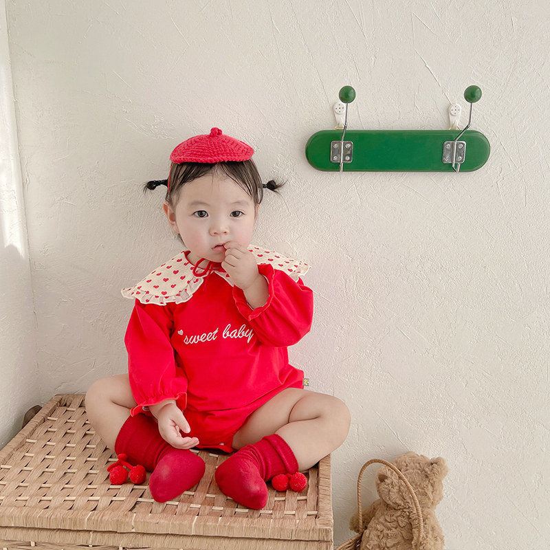 Baby clothes spring and autumn dress female baby Yang red haar clothes for hundreds of days to grab out crawling clothes for weeks