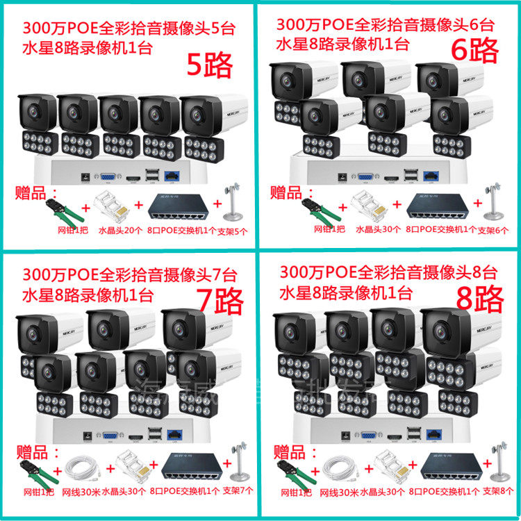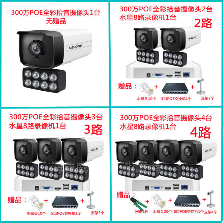Mercury surveillance equipment camera set of 3 million ultra - clear POE all - round 4 road 8 shop factory set