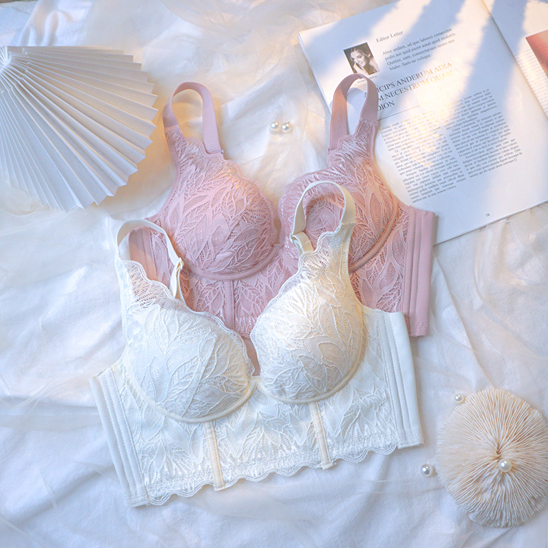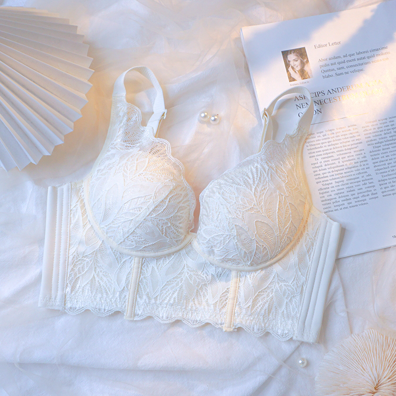 Underwear large chest display small collection of Deputy Dairy anti-sagging adjustment type No steel ring Four-row buckle Summer ultra-thin white bra