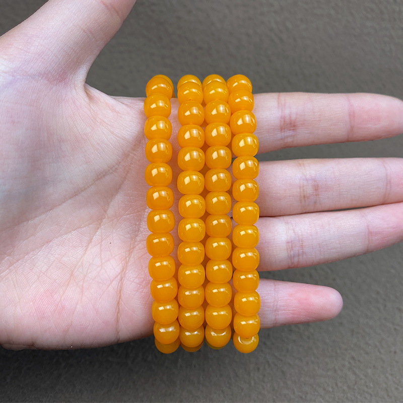 Yunnan Huanglongyu necklace Old-shaped bead Multi-ring handstring Mao coat chain 108 Chicken Oil Yellow Hands 7 * 8 Jewelry Jade