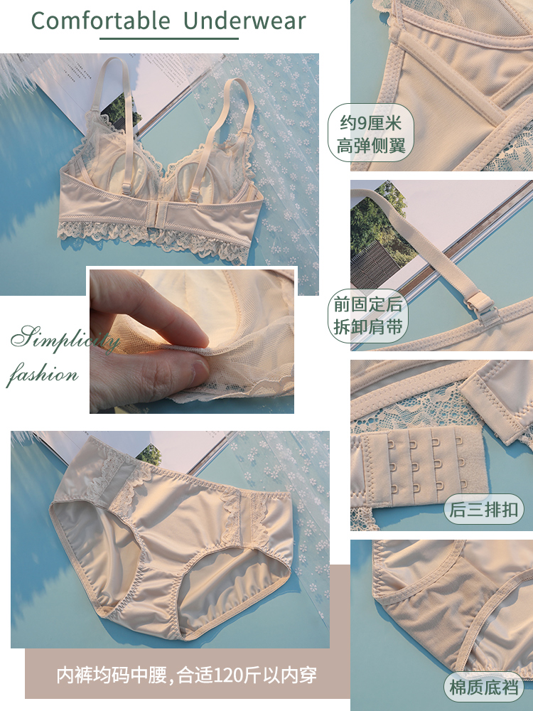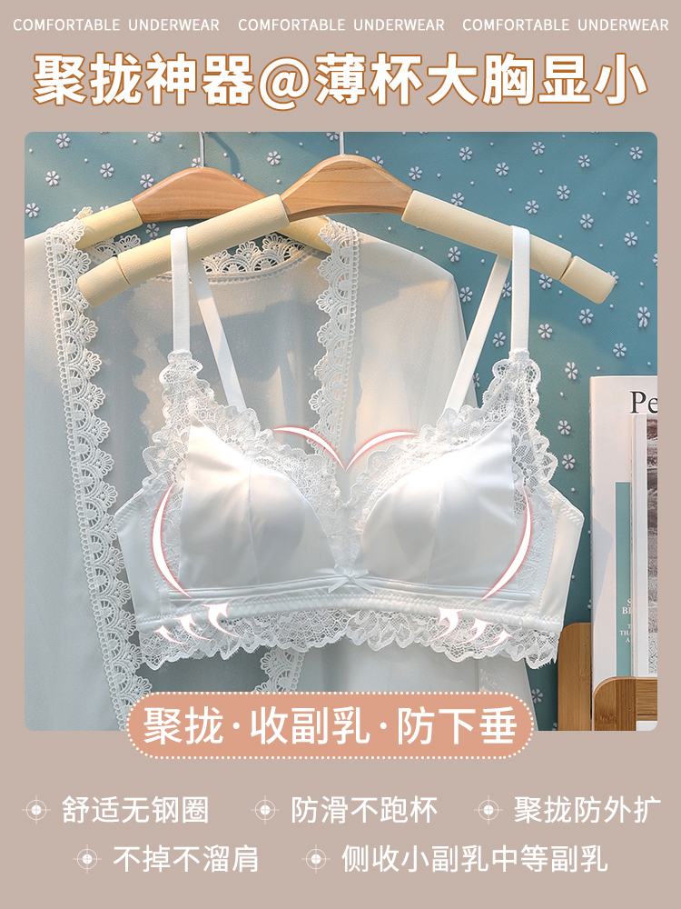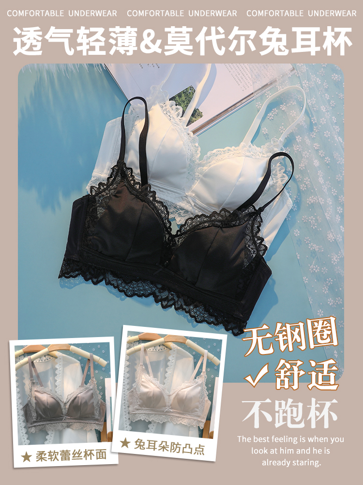 Modale Comfort Underwear Woman Thin big chest for small coalesch with no steel ring Vin Bra Breathable Sexy Lace Suit