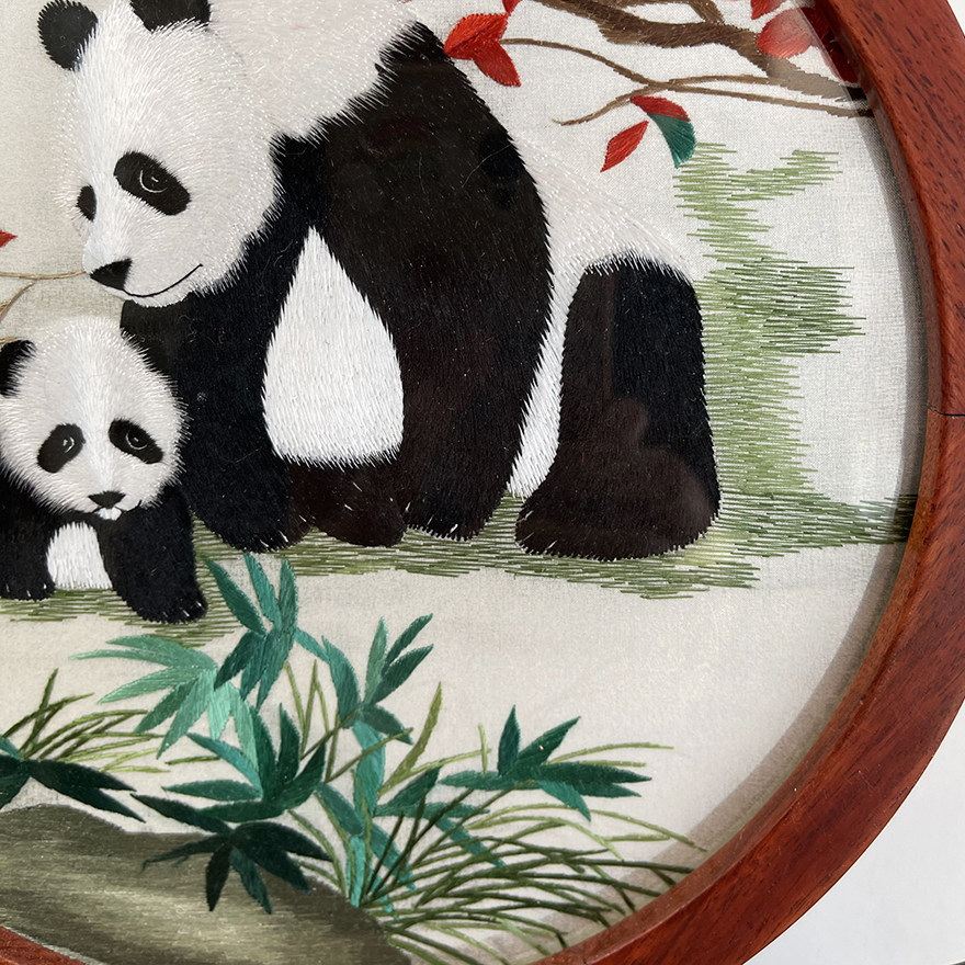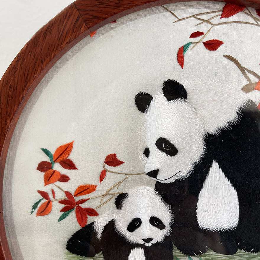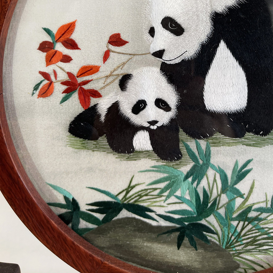High-quality Suzhou embroidery double-sided embroidery pure hand-embroidered table screen "Panda" home decoration painting gift