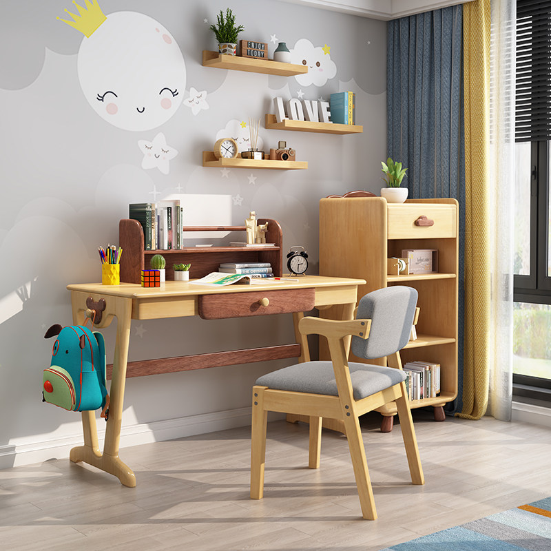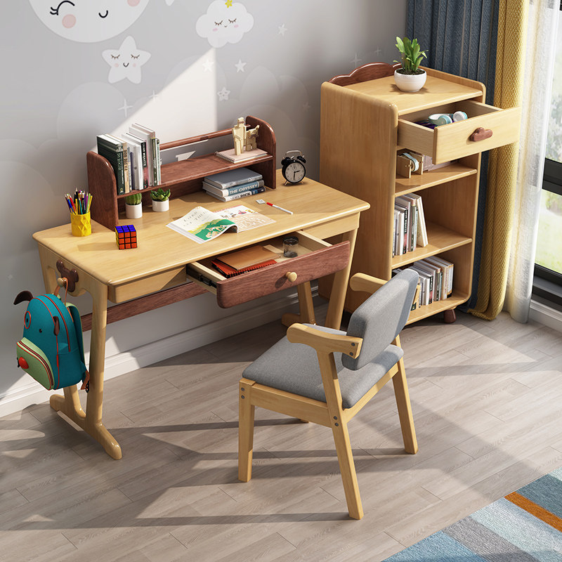 South Qiong Nordic Full Solid Wood Desk Modern Children Bookshelves Combined Bedroom Students Home Desk Study Desk