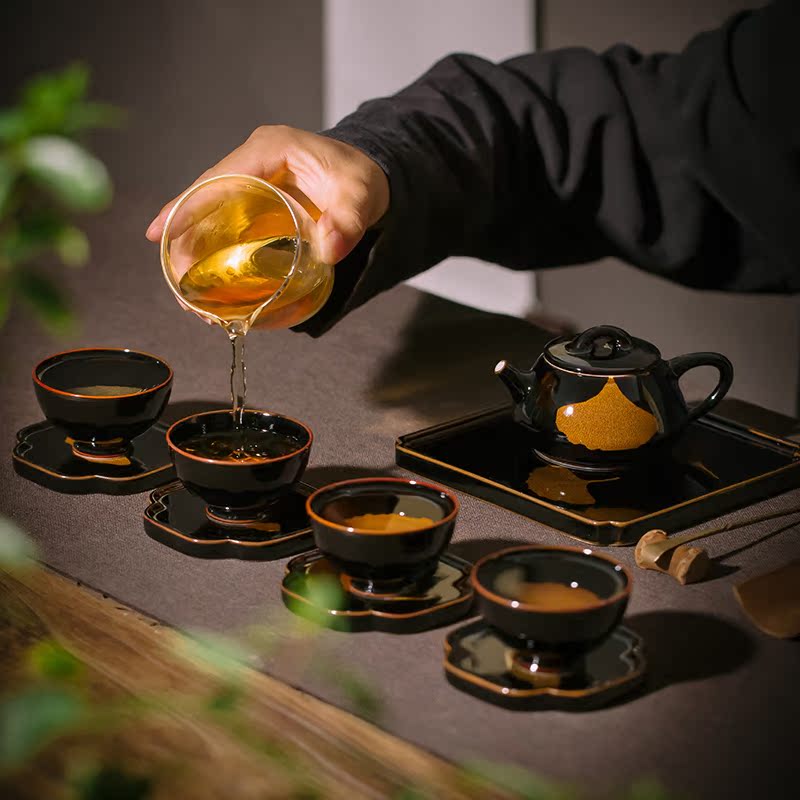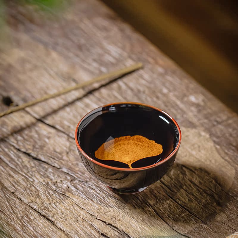 South Leafs Love Deep ginkgo Nankai University True Leaf into porcelain Gongfu Tea Master's cup Pair Cup Teapot Tea Cup