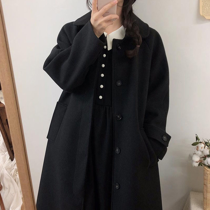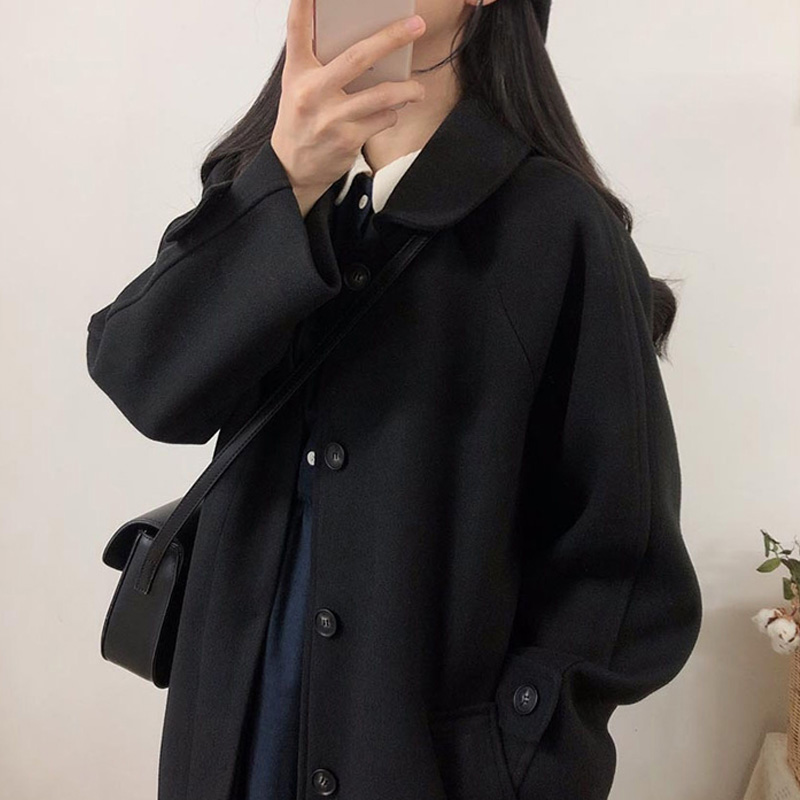 Hepburn style black woolen women's coat autumn and winter 2022 new style thickened small mid-length woolen coat