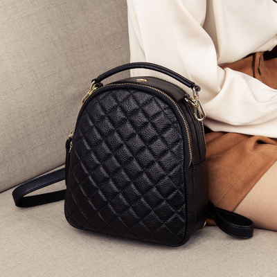 Hong Kong leather women's bag 2022 trendy mini backpack women's temperament first layer leather lozenge double-use small backpack