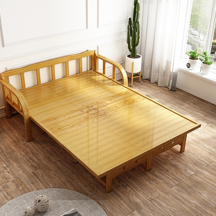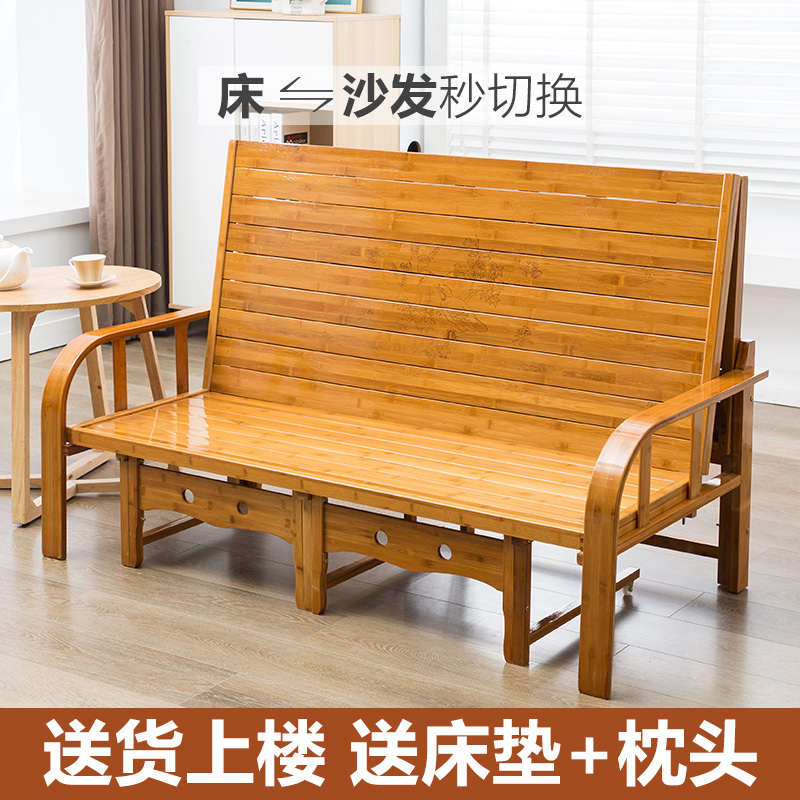 Bamboo bed sofa bed dual-use double single multi-function folding bed lunch break simple home rental room solid wood hard board