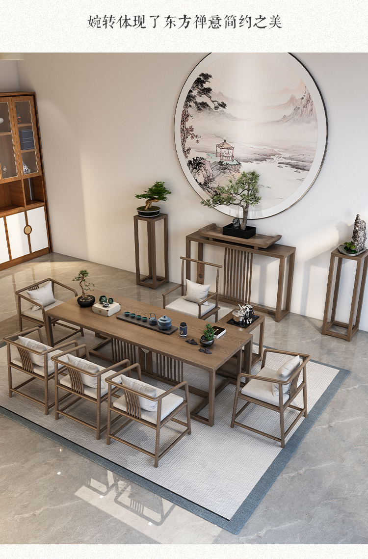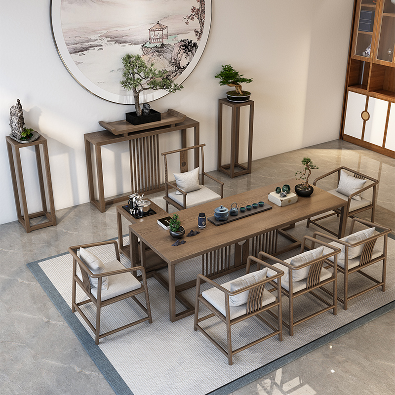 Light Extravagant Solid Wood New Chinese Tea Table And Chairs Combination Brief Modern Teahouse Tea Shop Tea Table Log Tea Daub Tea Table