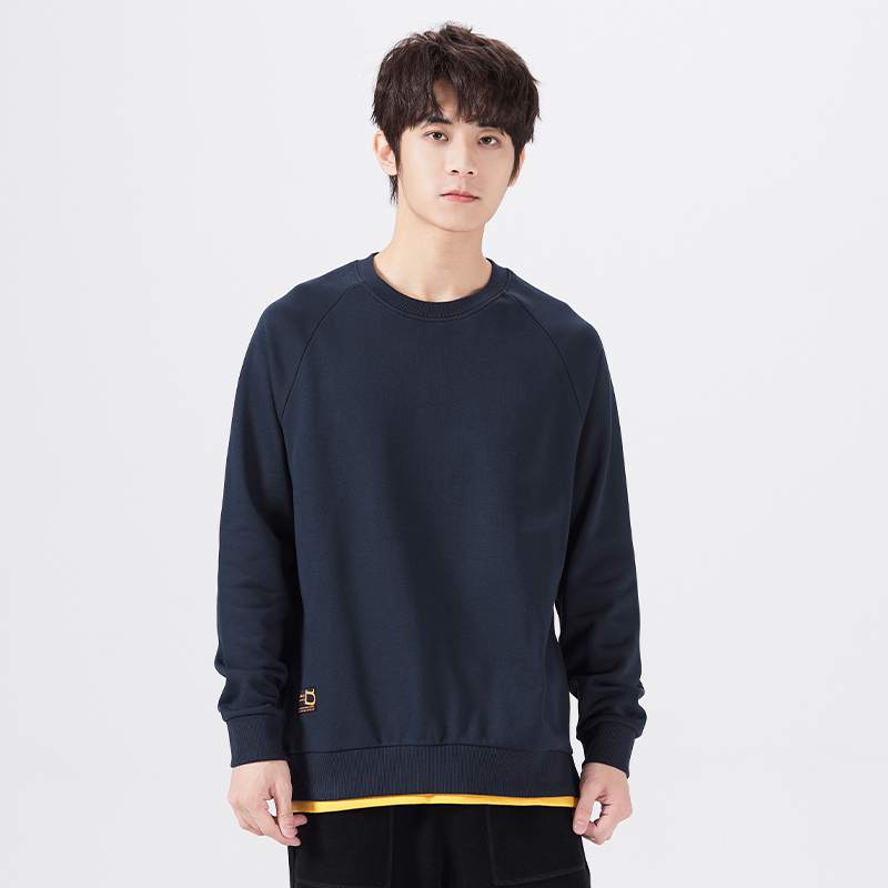 Hanska autumn and winter round neck thick cotton T men's plus velvet thick solid color pullover loose all-match warm long-sleeved underwear