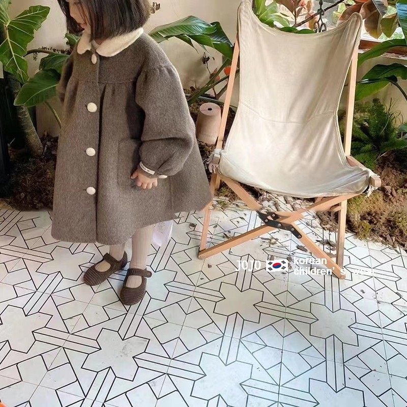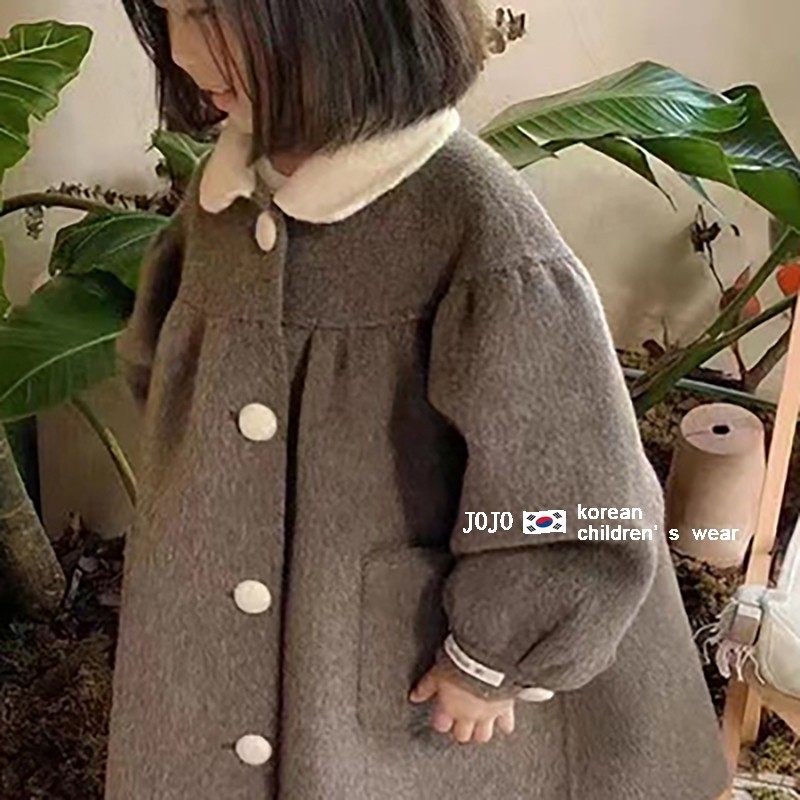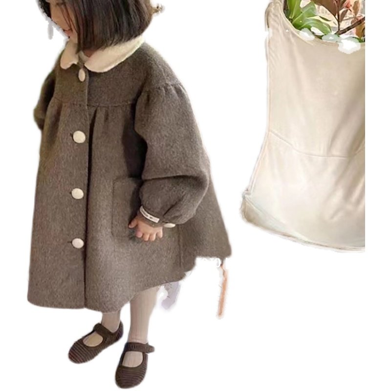 Korean children's stuffed girl's fur coat 2022 Winter new thickened warm doll collar cashmere Grand coat in the long version