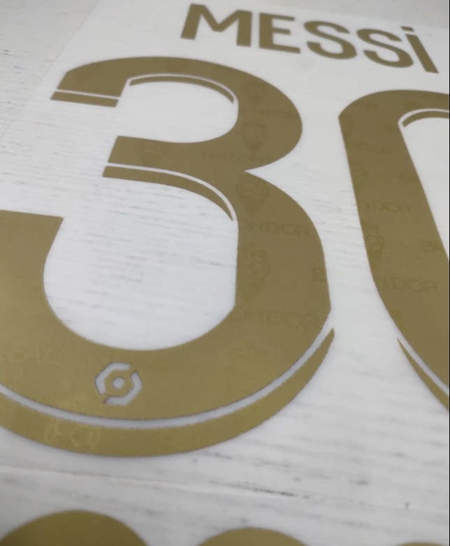 30#MESSI with dark stripes behind advertising gold