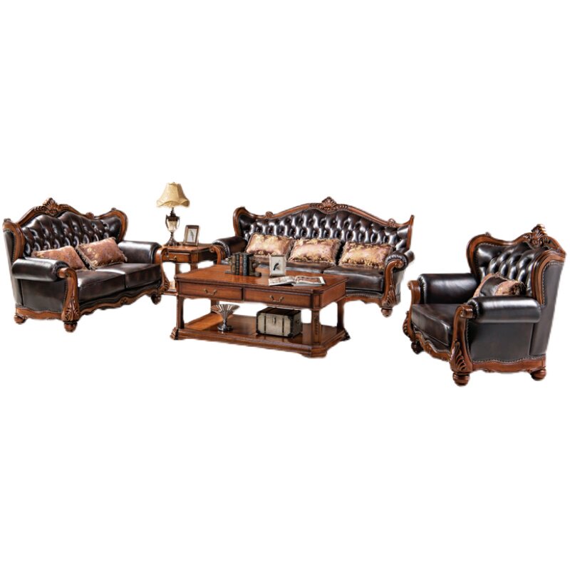 American log sofa walnut leather sofa U-shaped carved combination sofa simple beauty living room solid wood furniture