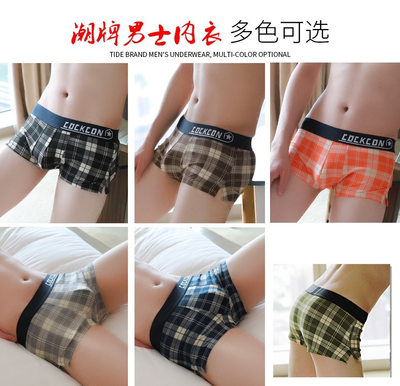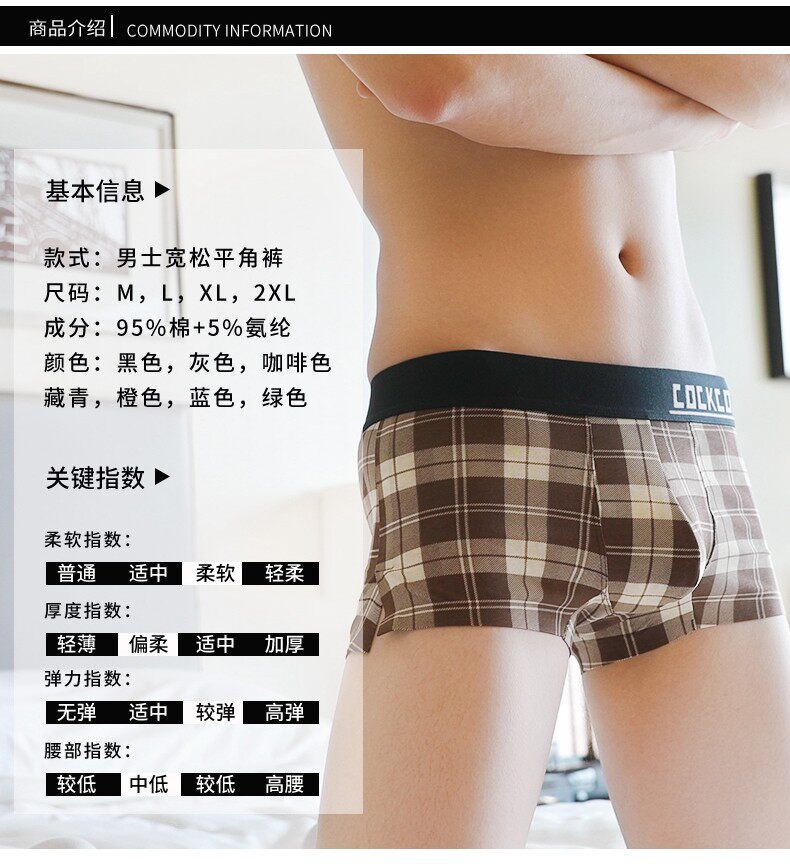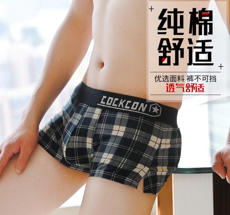 Pure cotton underwear men's boxer pants seamless plaid trend Korean version loose casual slit design Arrow pants large size