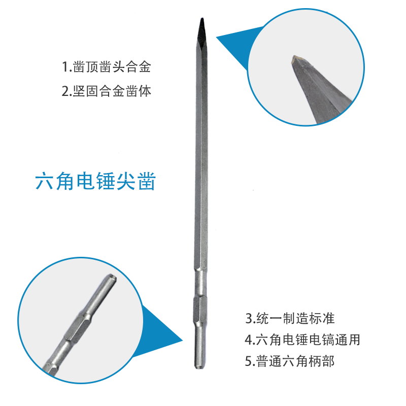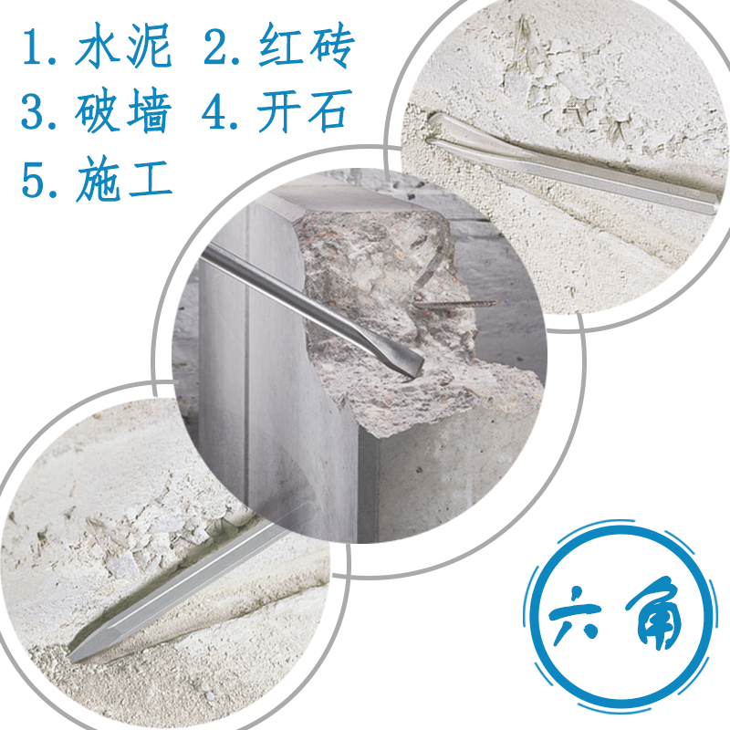 Hexagon Sharp Chisel Broken Stone Tungsten Steel God Instrumental Electric Pick Chisel Alloy Concrete Stone Work Cement Open Stone Shovel Head Electric Hammer Drill Down
