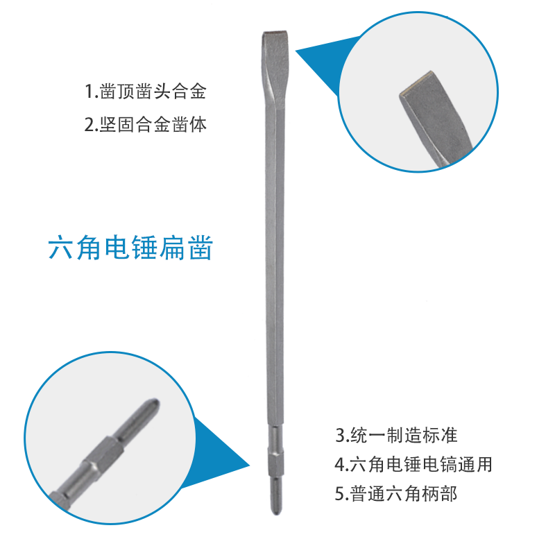 Hexagonal Flat Chipping Open Groove Flat Shovel Breaking Stone God Instrumental Electric Pick Son Tungsten Steel Concrete Cement Beating Stone Shovel Head Electric Hammer Drill Alloy