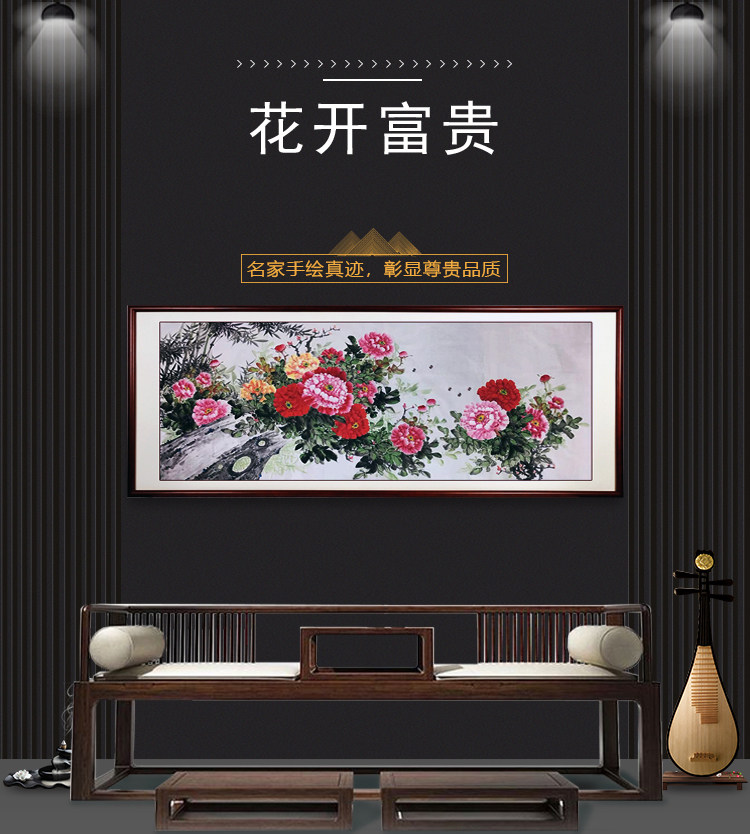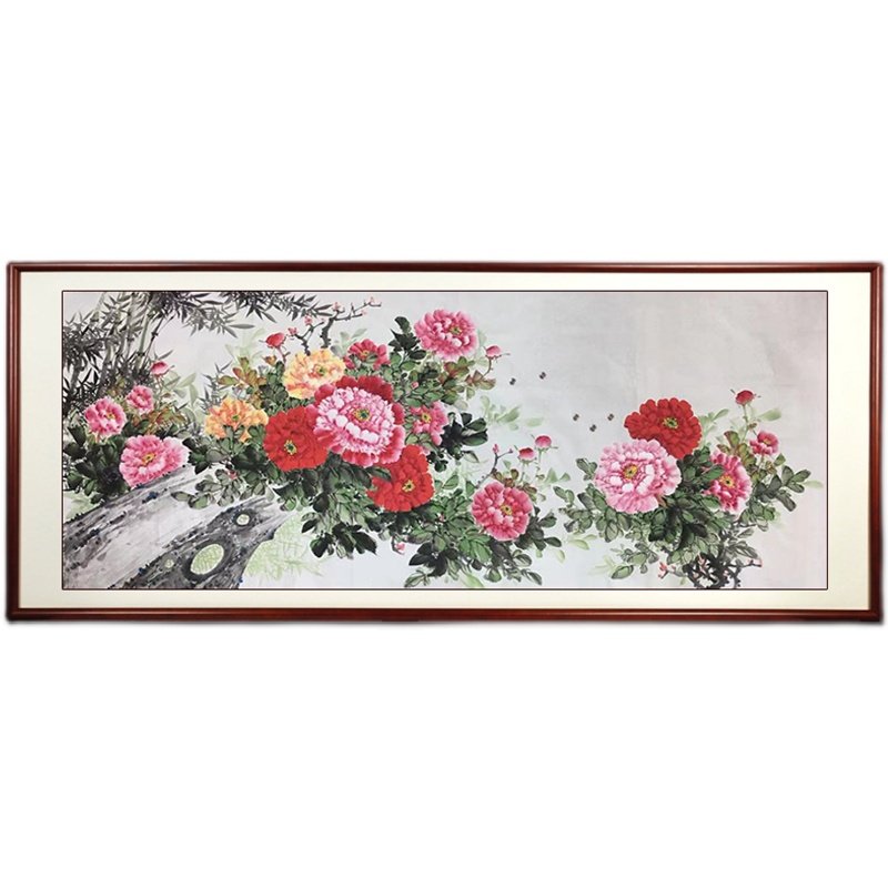 Hand-painted authentic Chinese painting peony flowers blooming wealth picture living room sofa background lucky Chinese style framed decorative wall painting