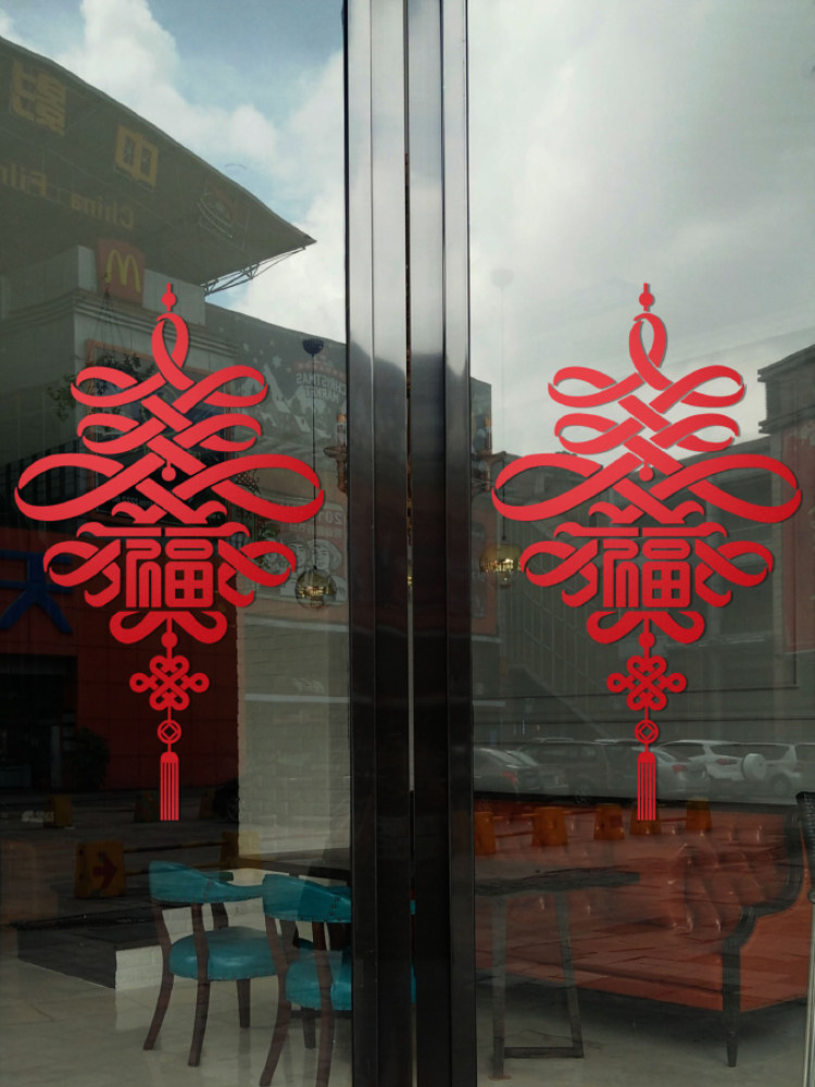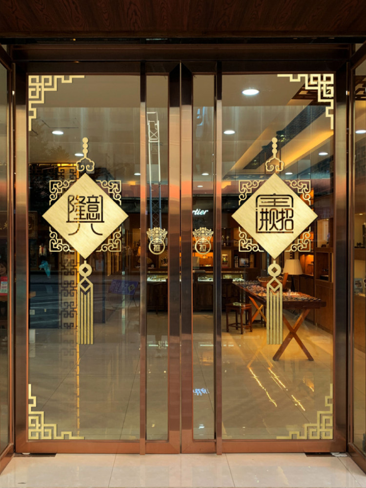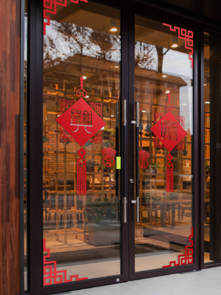New Chinese-style personalized decoration Chinese style national tide hollow self-adhesive high-end glass door sticker classical sticker shop shop