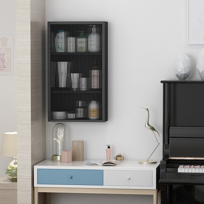 Bathroom glass hanging cabinet wall hanging side cabinet powder room cosmetic storage side cabinet kitchen storage rack Nordic