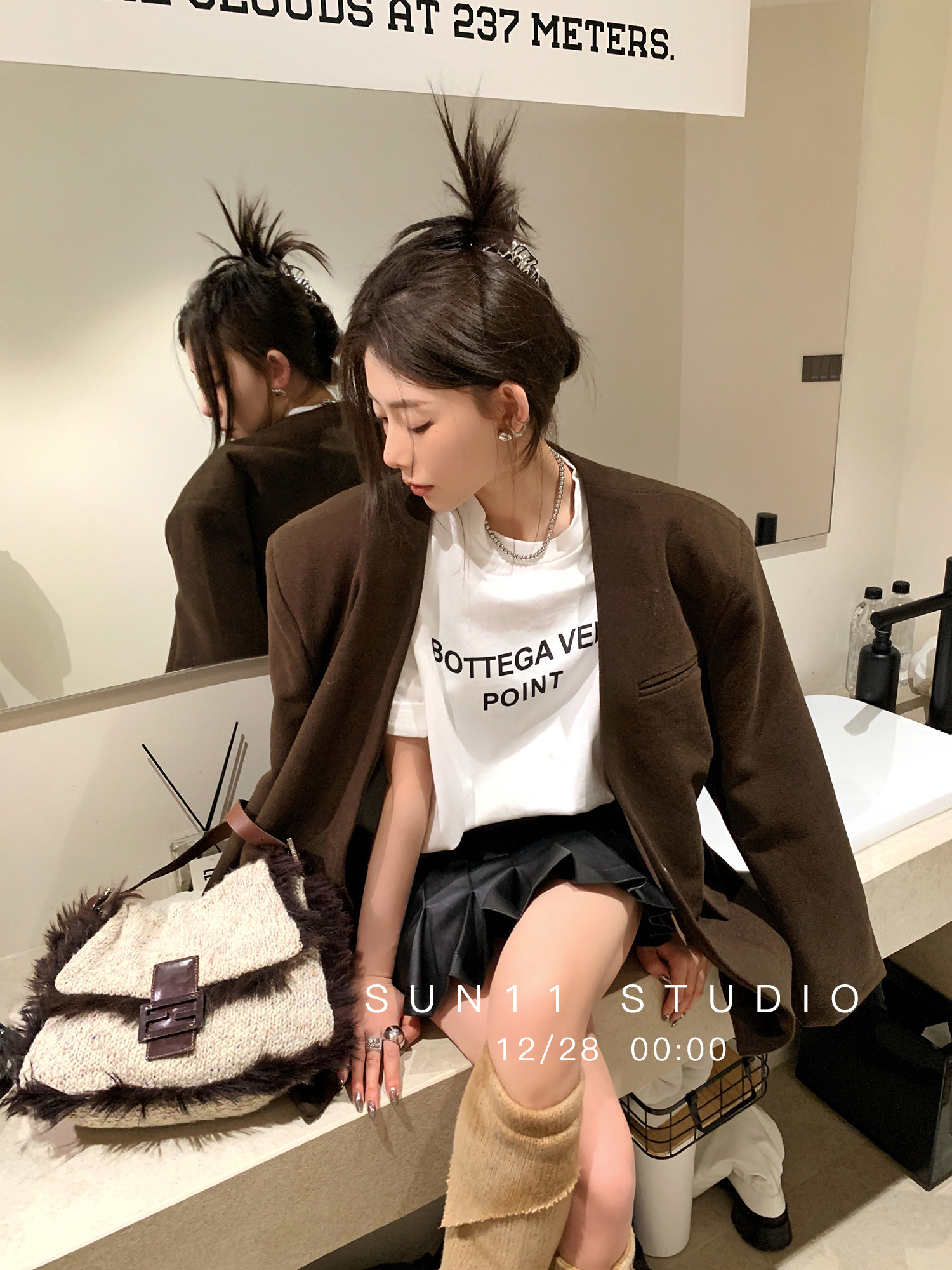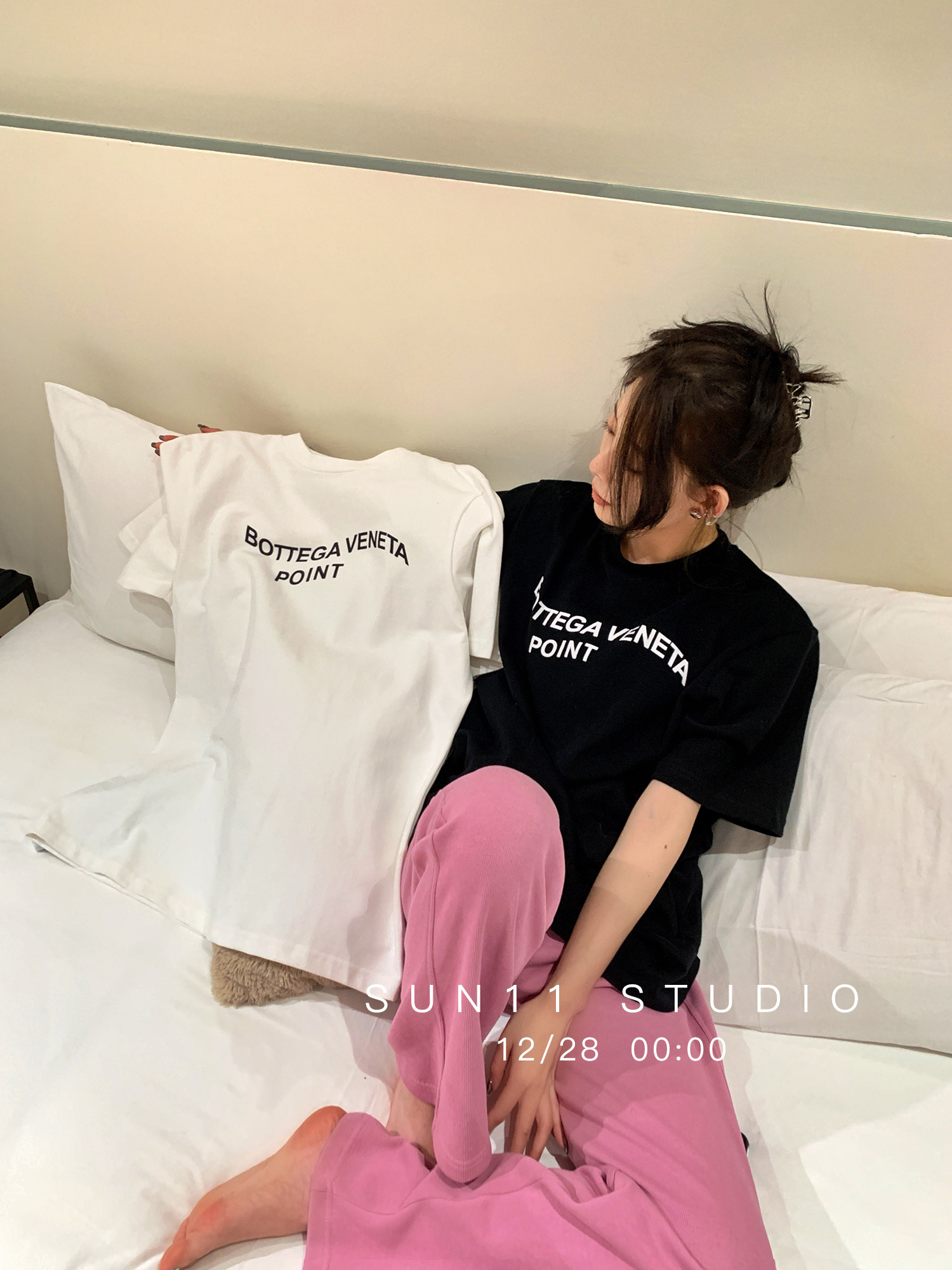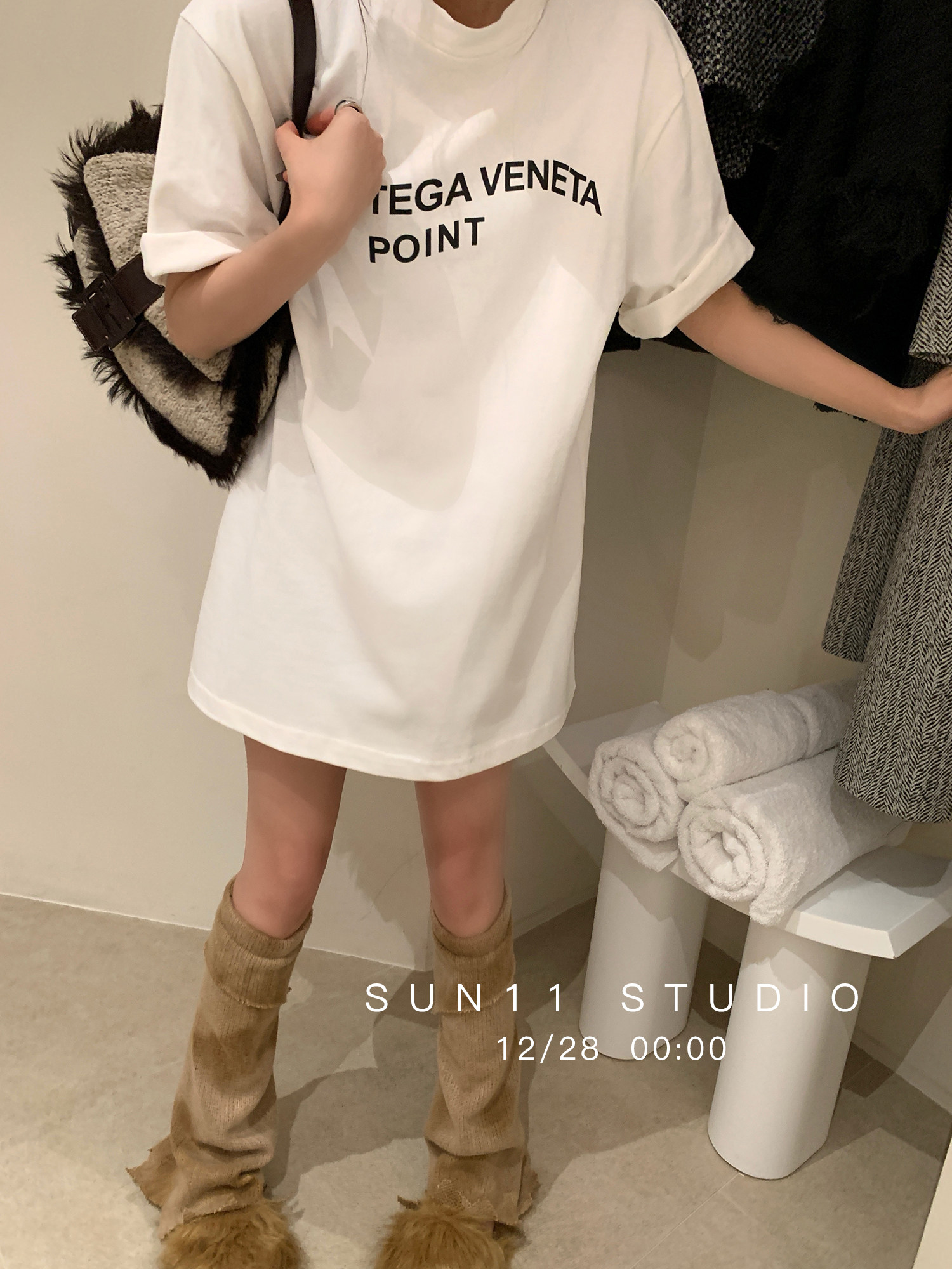 SUN11 black short sleeve T-shirt woman 2022 New easy port Wind in long version boyfriend Wind Alphabet Pure Cotton Blouse